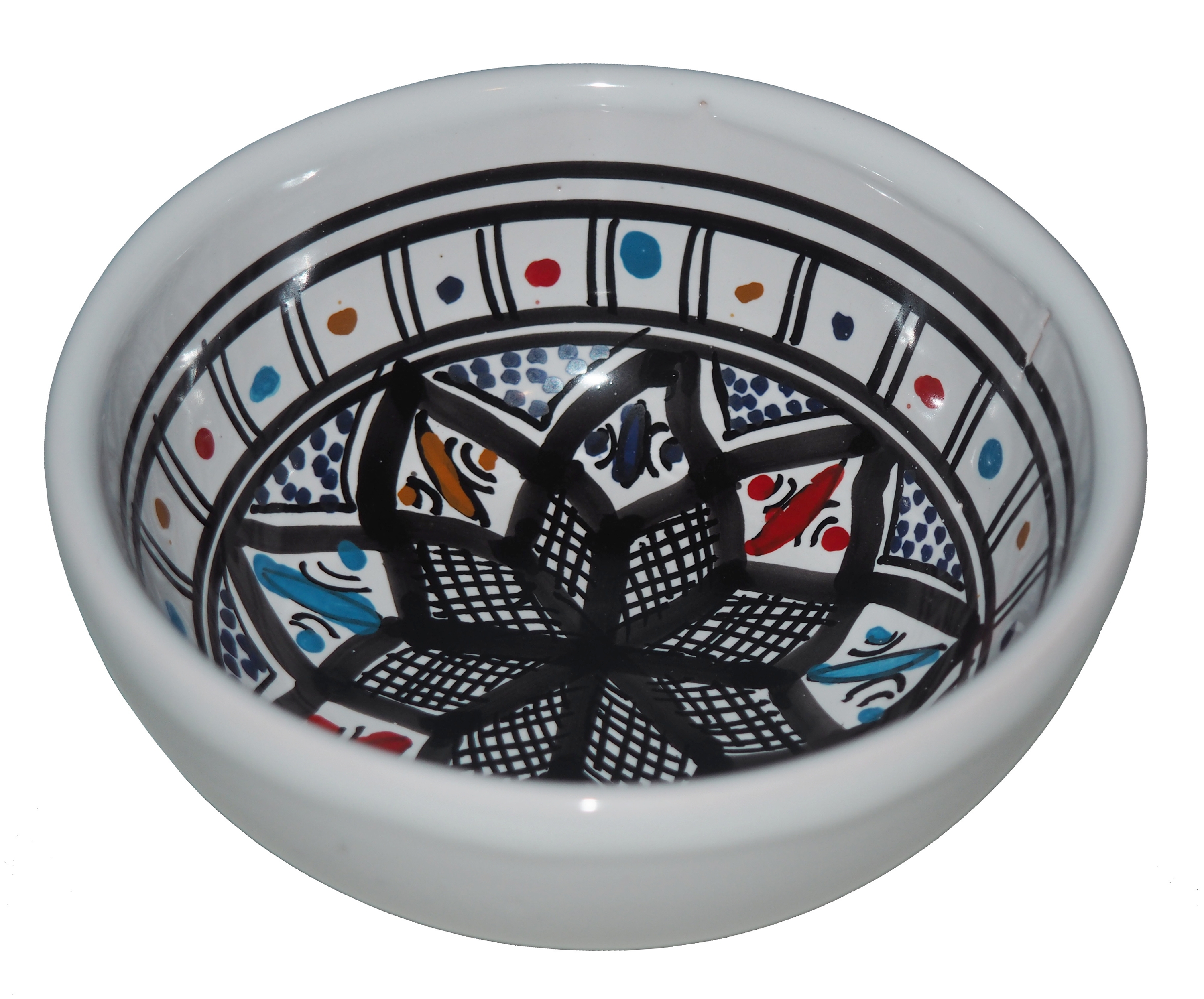 Zwraca uwagę piękne wzornictwo i bogata arabska kolorystyka. Miseczka malowana jest w berberyjskie wzory. Przepiękna, niebanalna ozdoba Twojego stołu prosto z Tunezji.