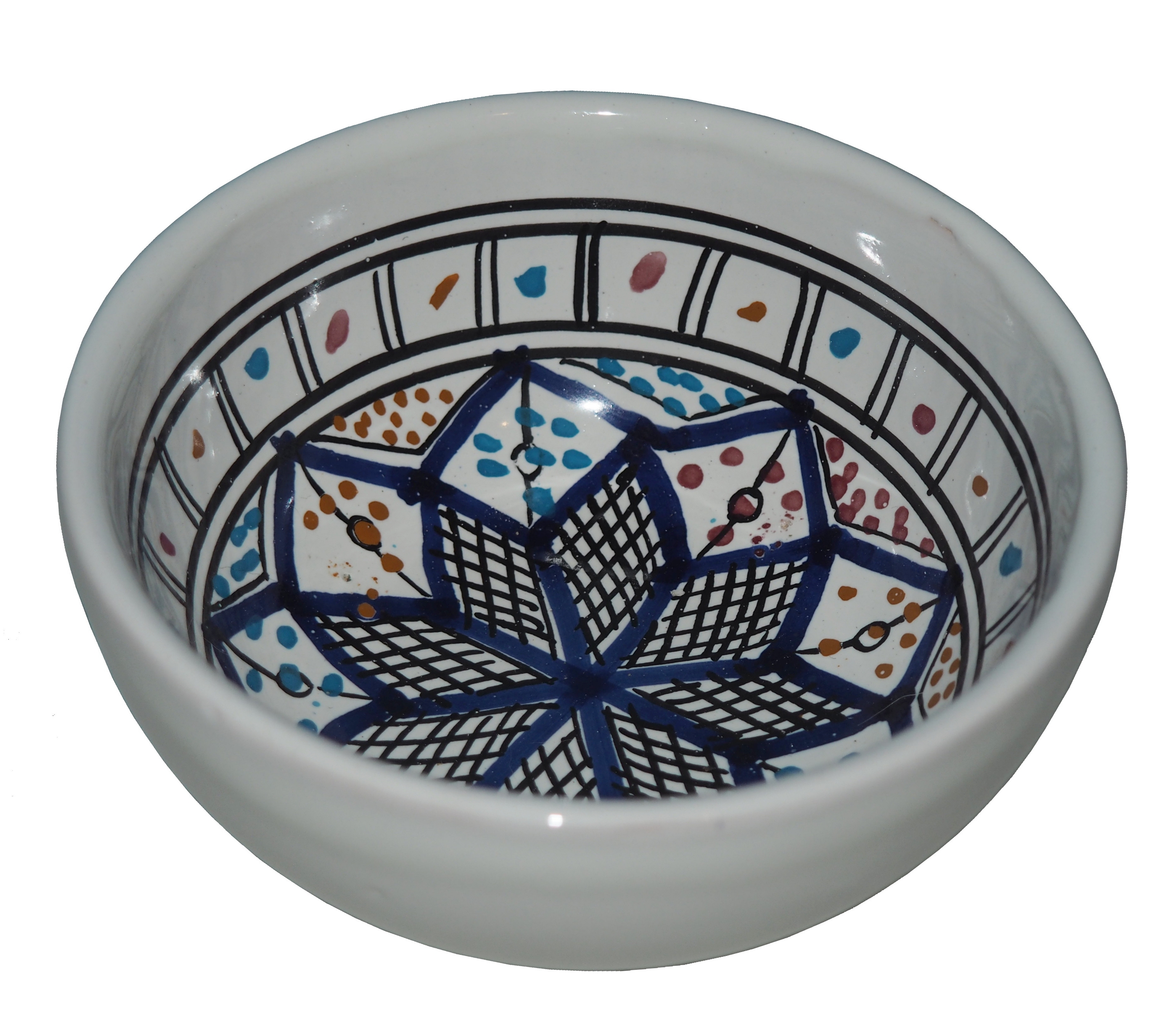 Zwraca uwagę piękne wzornictwo i bogata arabska kolorystyka. Miseczka malowana jest w berberyjskie wzory. Przepiękna, niebanalna ozdoba Twojego stołu prosto z Tunezji.