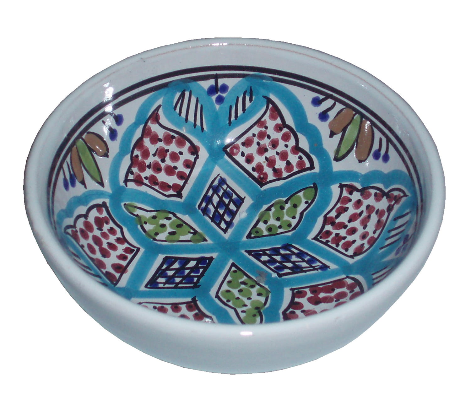 Zwraca uwagę piękne wzornictwo i bogata arabska kolorystyka. Miseczka malowana jest w berberyjskie wzory. Przepiękna, niebanalna ozdoba Twojego stołu prosto z Tunezji.