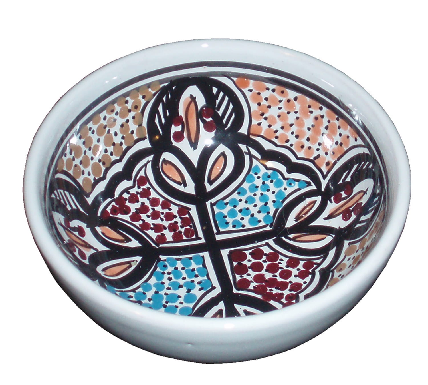 Zwraca uwagę piękne wzornictwo i bogata arabska kolorystyka. Miseczka malowana jest w berberyjskie wzory. Przepiękna, niebanalna ozdoba Twojego stołu prosto z Tunezji.
