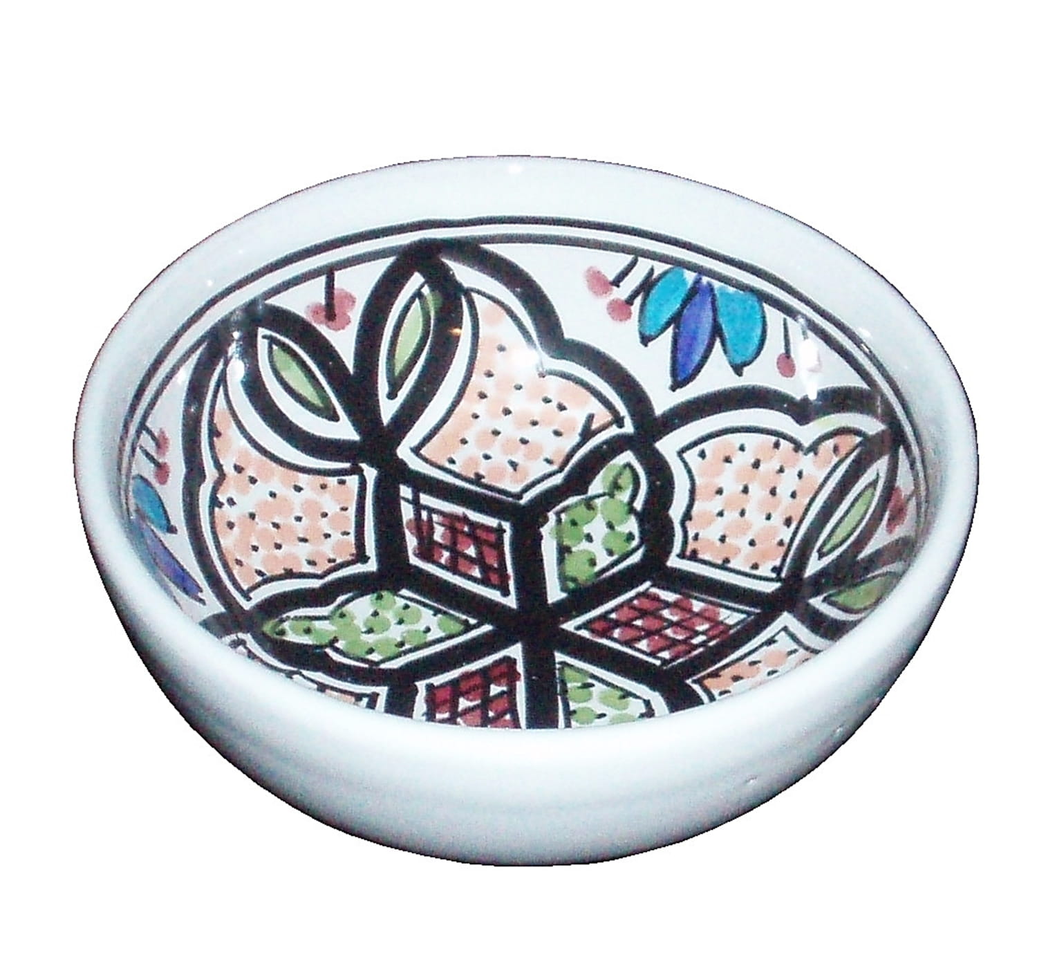 Zwraca uwagę piękne wzornictwo i bogata arabska kolorystyka. Miseczka malowana jest w berberyjskie wzory. Przepiękna, niebanalna ozdoba Twojego stołu prosto z Tunezji.