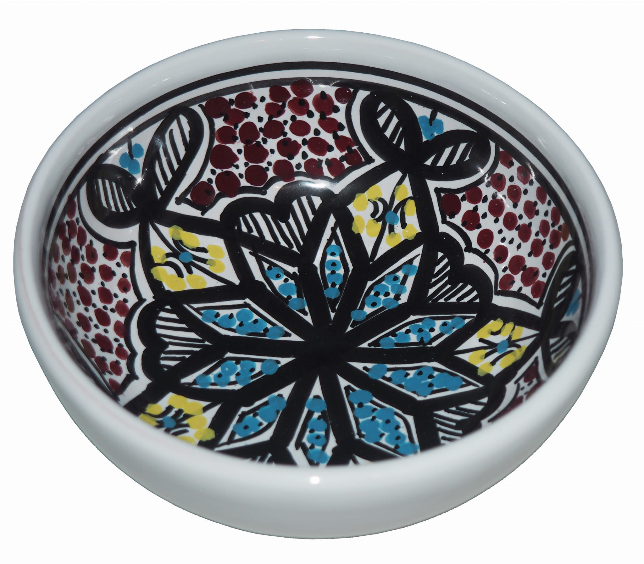 Zwraca uwagę piękne wzornictwo i bogata arabska kolorystyka. Miseczka malowana jest w berberyjskie wzory. Przepiękna, niebanalna ozdoba Twojego stołu prosto z Tunezji.
