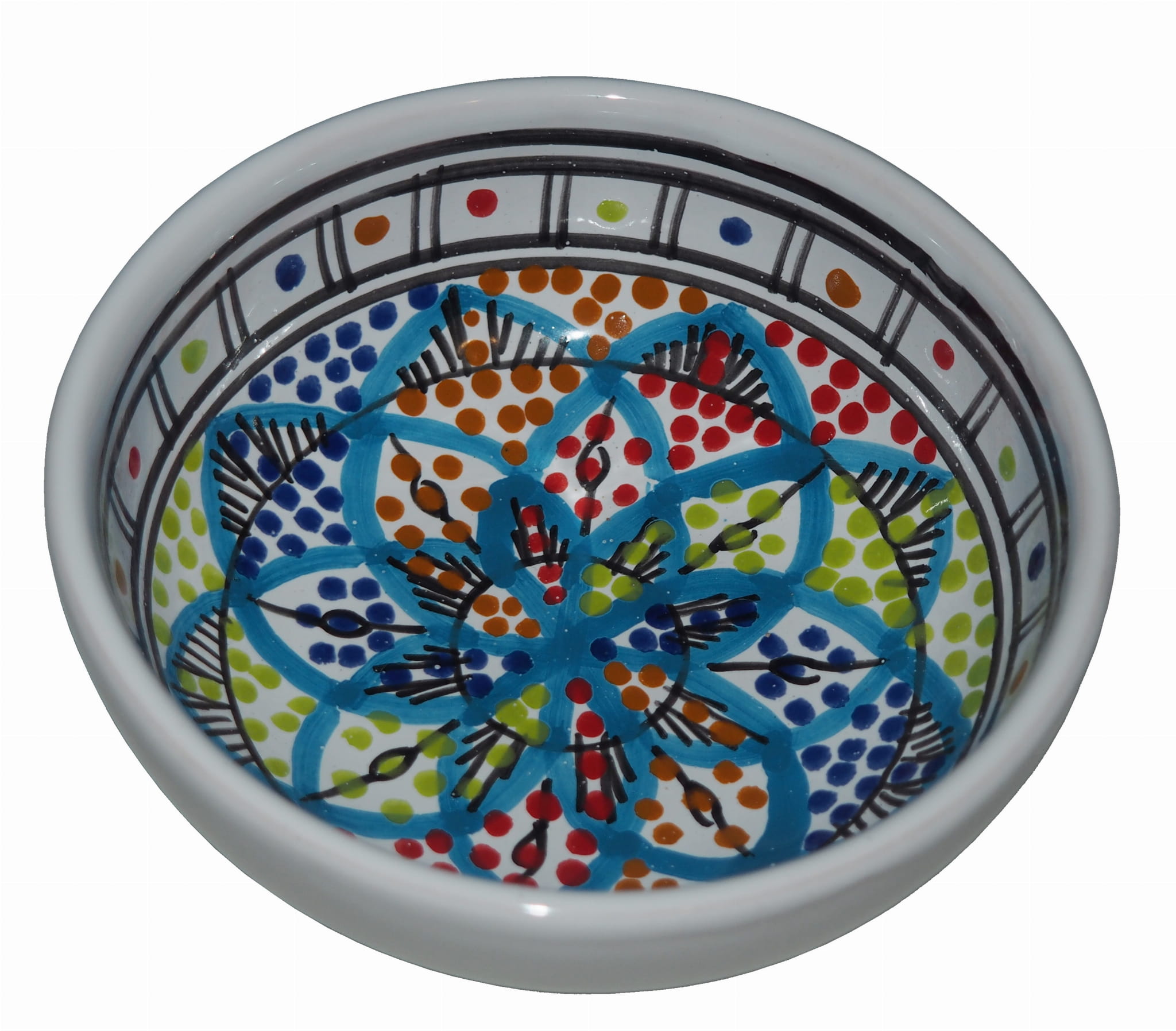 Zwraca uwagę piękne wzornictwo i bogata arabska kolorystyka. Miseczka malowana jest w berberyjskie wzory. Przepiękna, niebanalna ozdoba Twojego stołu - ozdobny,a jednocześnie funkcjonalny gadżet pochodzący z Tunezji.