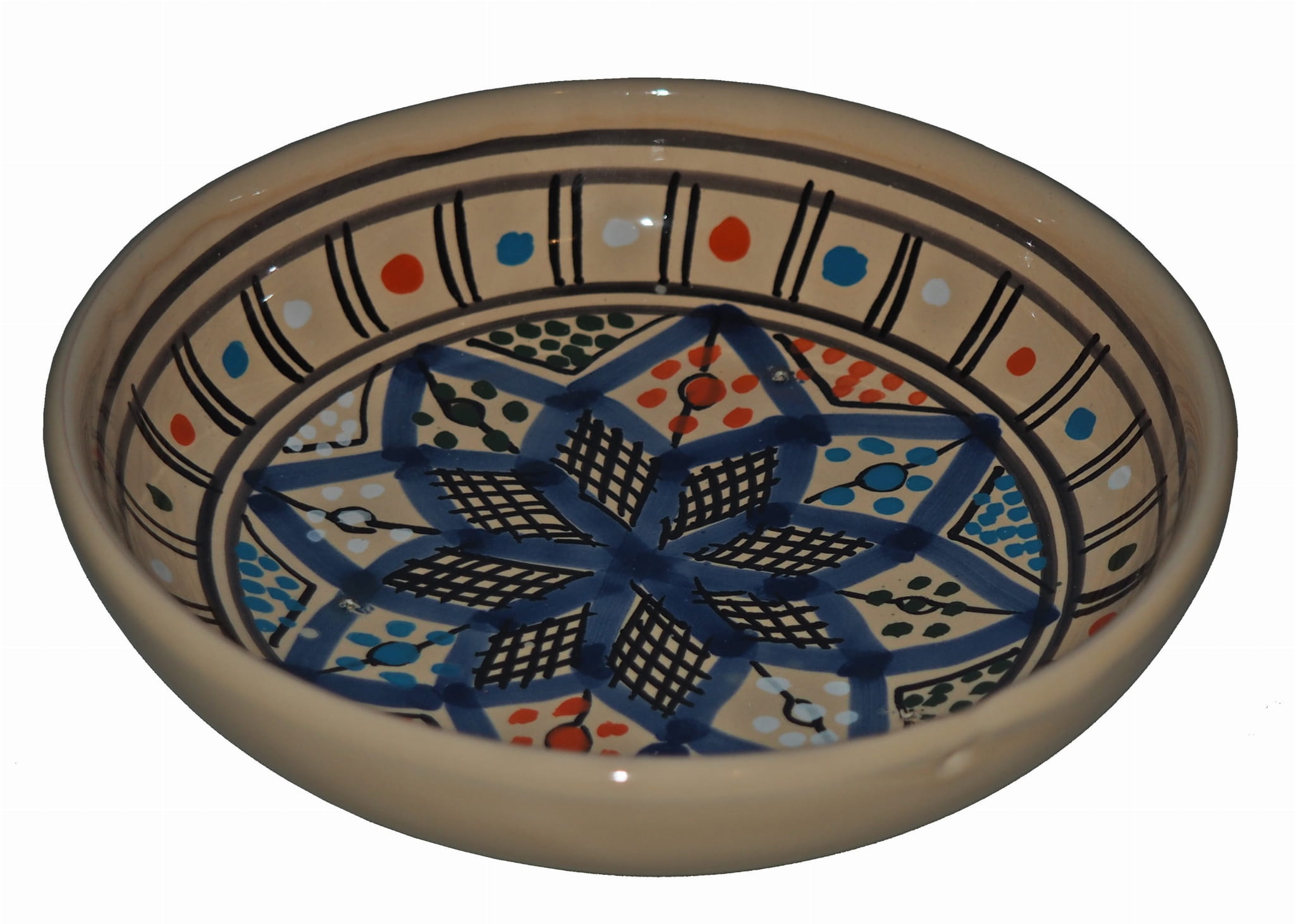 Wszystkie sprzedawane przez nas produkty ceramiczne pochodzą z małych rodzinnych "fabryczek" berberyjskich - produkty te są wykonane i malowane ręcznie. Wszystkie umieszczone na nich wzory to tradycyjne motywy arabskie i berberyjskie.