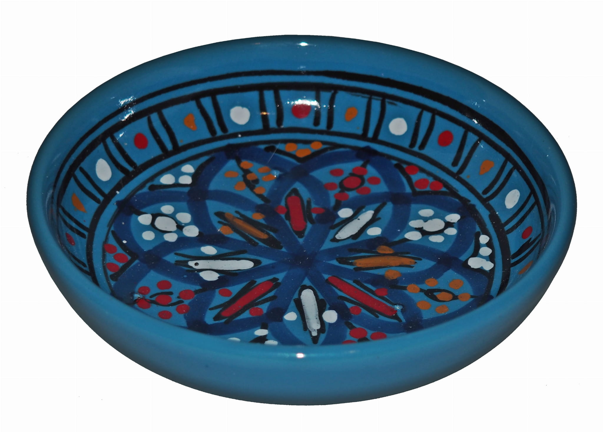 Zwraca uwagę piękne wzornictwo i bogata arabska kolorystyka. Miseczka malowana jest w berberyjskie wzory. Przepiękna, niebanalna ozdoba Twojego stołu - ozdobna miseczka prosto z Tunezji.