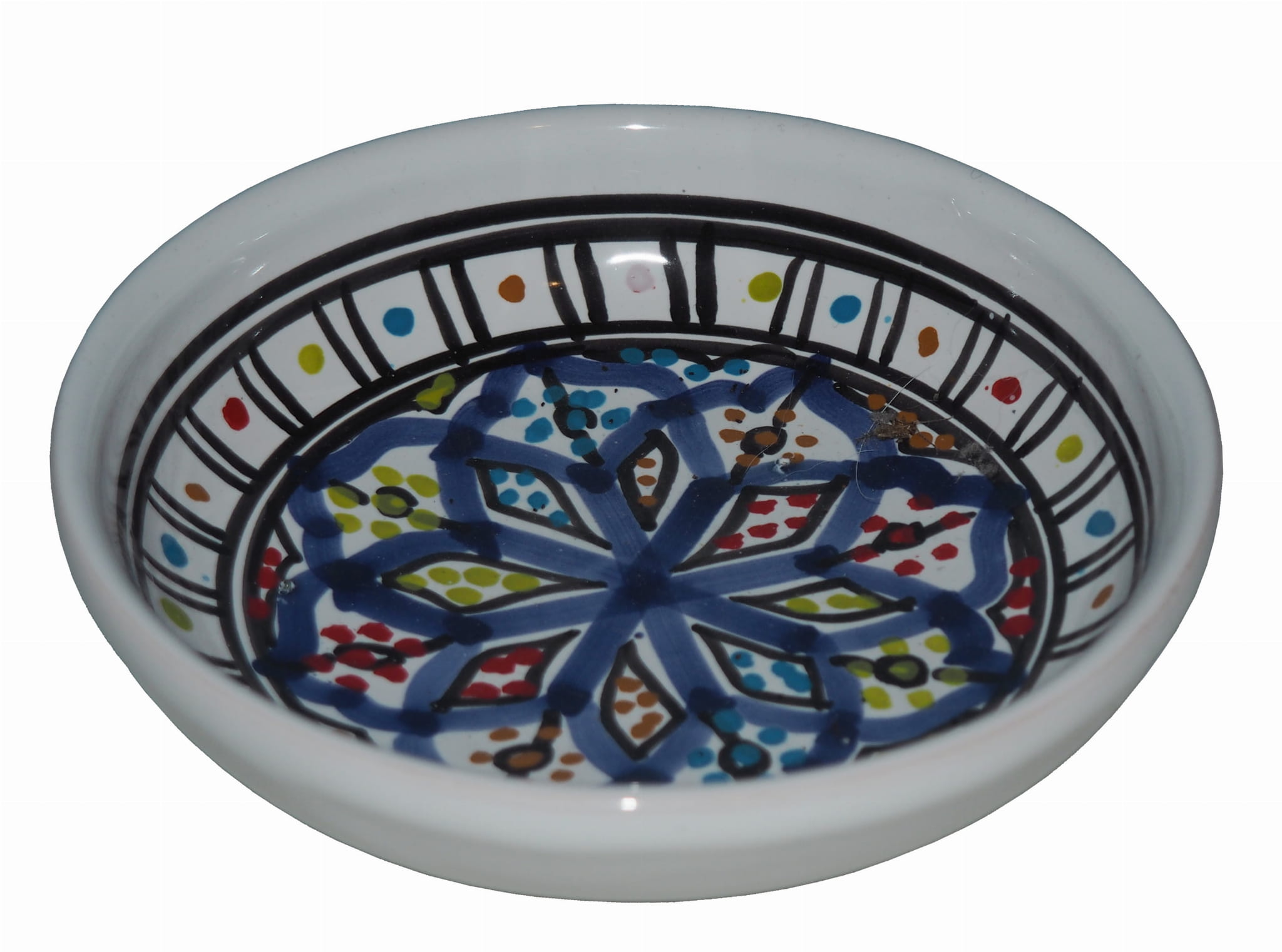 Zwraca uwagę piękne wzornictwo i bogata arabska kolorystyka. Miseczka malowana jest w berberyjskie wzory. Przepiękna, niebanalna ozdoba Twojego stołu - ozdobna miseczka prosto z Tunezji.