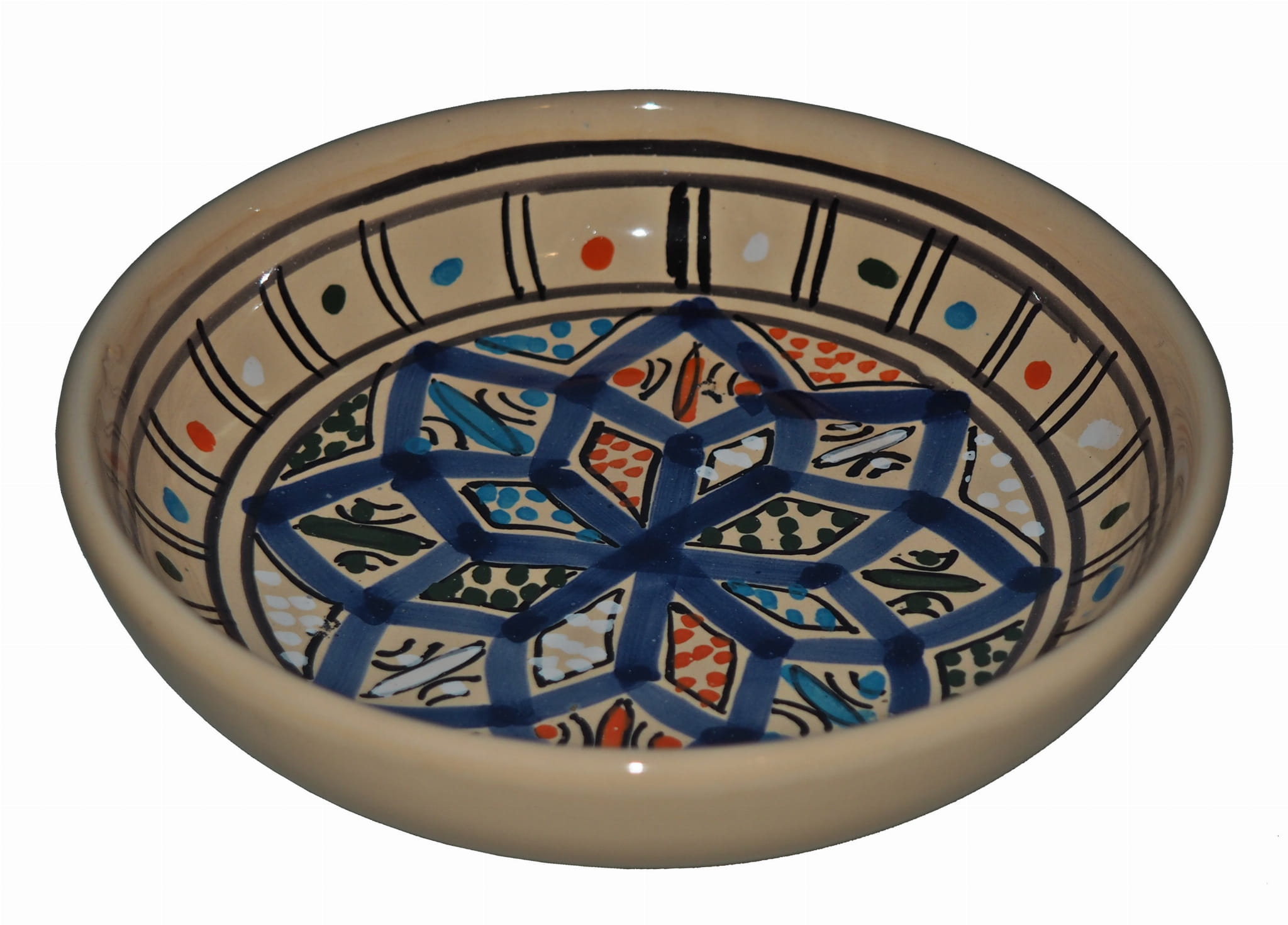 Zwraca uwagę piękne wzornictwo i bogata arabska kolorystyka. Miseczka malowana jest w berberyjskie wzory. Przepiękna, niebanalna ozdoba Twojego stołu - ozdobna miseczka prosto z Tunezji.