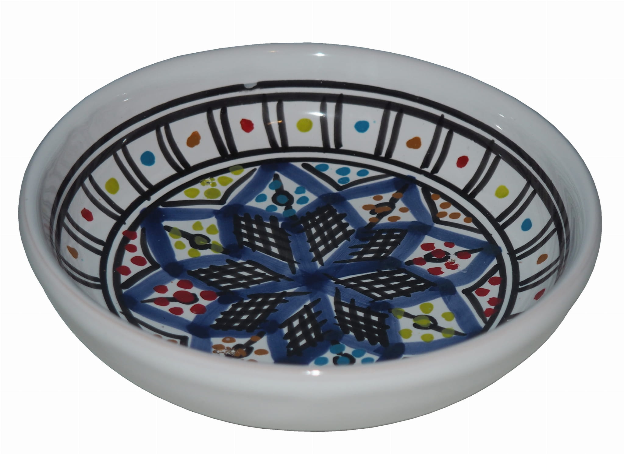 Zwraca uwagę piękne wzornictwo i bogata arabska kolorystyka. Miseczka malowana jest w berberyjskie wzory. Przepiękna, niebanalna ozdoba Twojego stołu - ozdobna miseczka prosto z Tunezji.