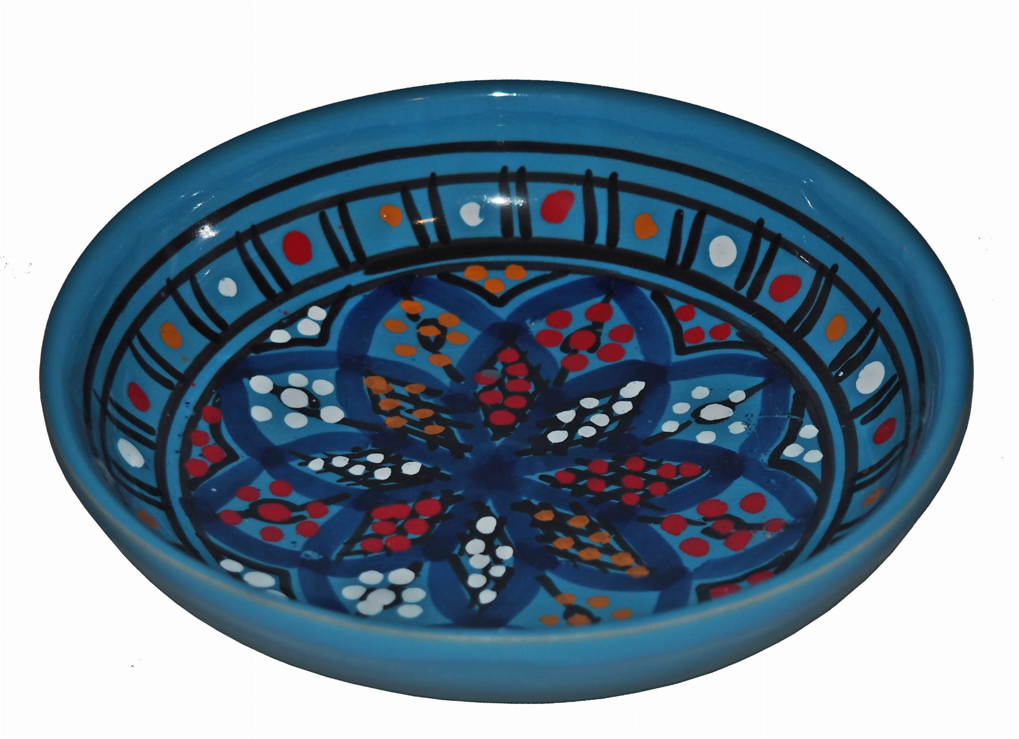 Wszystkie sprzedawane przez nas produkty ceramiczne pochodzą z małych rodzinnych "fabryczek" berberyjskich - produkty te są wykonane i malowane ręcznie. Wszystkie umieszczone na nich wzory to tradycyjne motywy arabskie i berberyjskie.