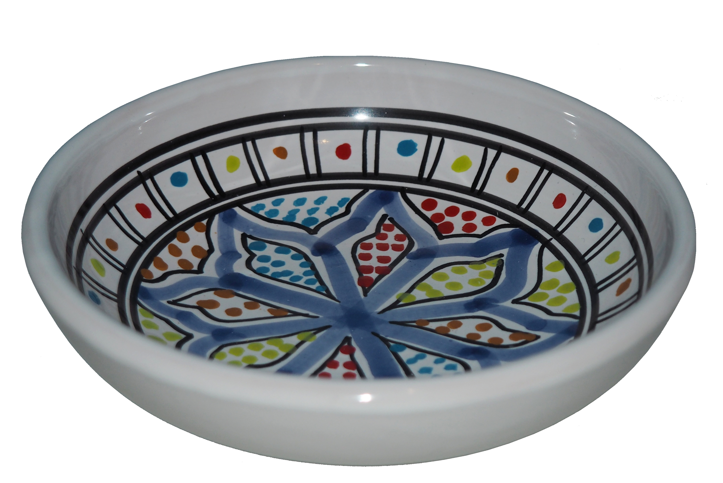 Zwraca uwagę piękne wzornictwo i bogata arabska kolorystyka. Miseczka malowana jest w berberyjskie wzory. Przepiękna, niebanalna ozdoba Twojego stołu - ozdobna miseczka prosto z Tunezji.
