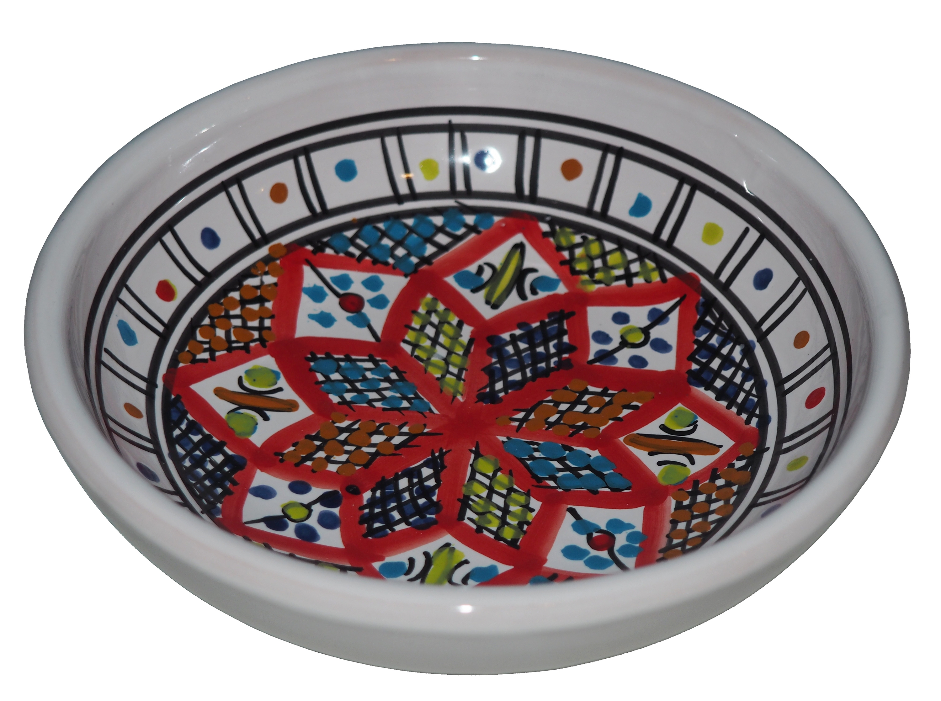Wszystkie sprzedawane przez nas produkty ceramiczne pochodzą z małych rodzinnych "fabryczek" berberyjskich - produkty te są wykonane i malowane ręcznie. Wszystkie umieszczone na nich wzory to tradycyjne motywy arabskie i berberyjskie.
