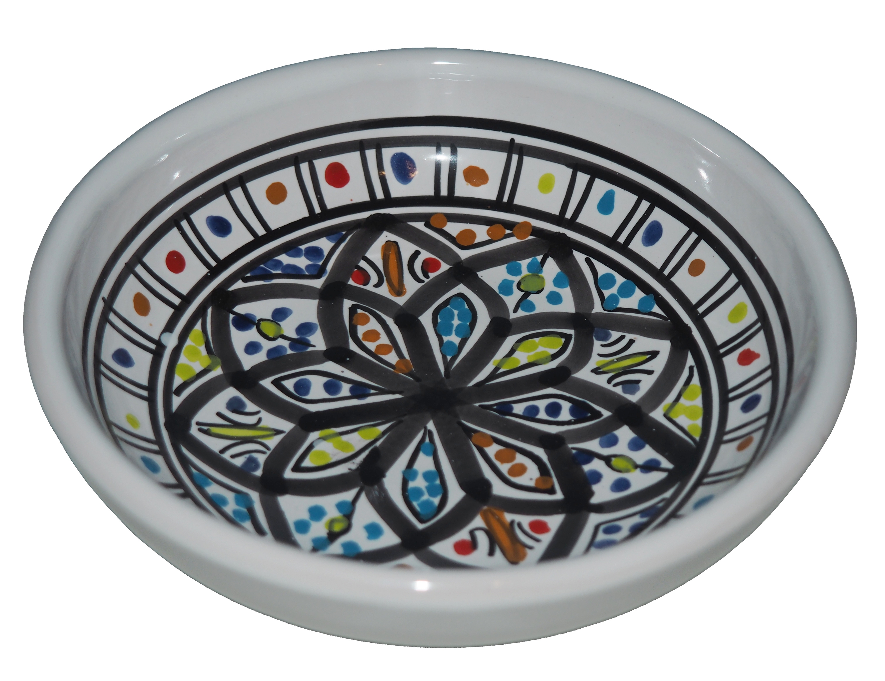 Wszystkie sprzedawane przez nas produkty ceramiczne pochodzą z małych rodzinnych "fabryczek" berberyjskich - produkty te są wykonane i malowane ręcznie. Wszystkie umieszczone na nich wzory to tradycyjne motywy arabskie i berberyjskie.