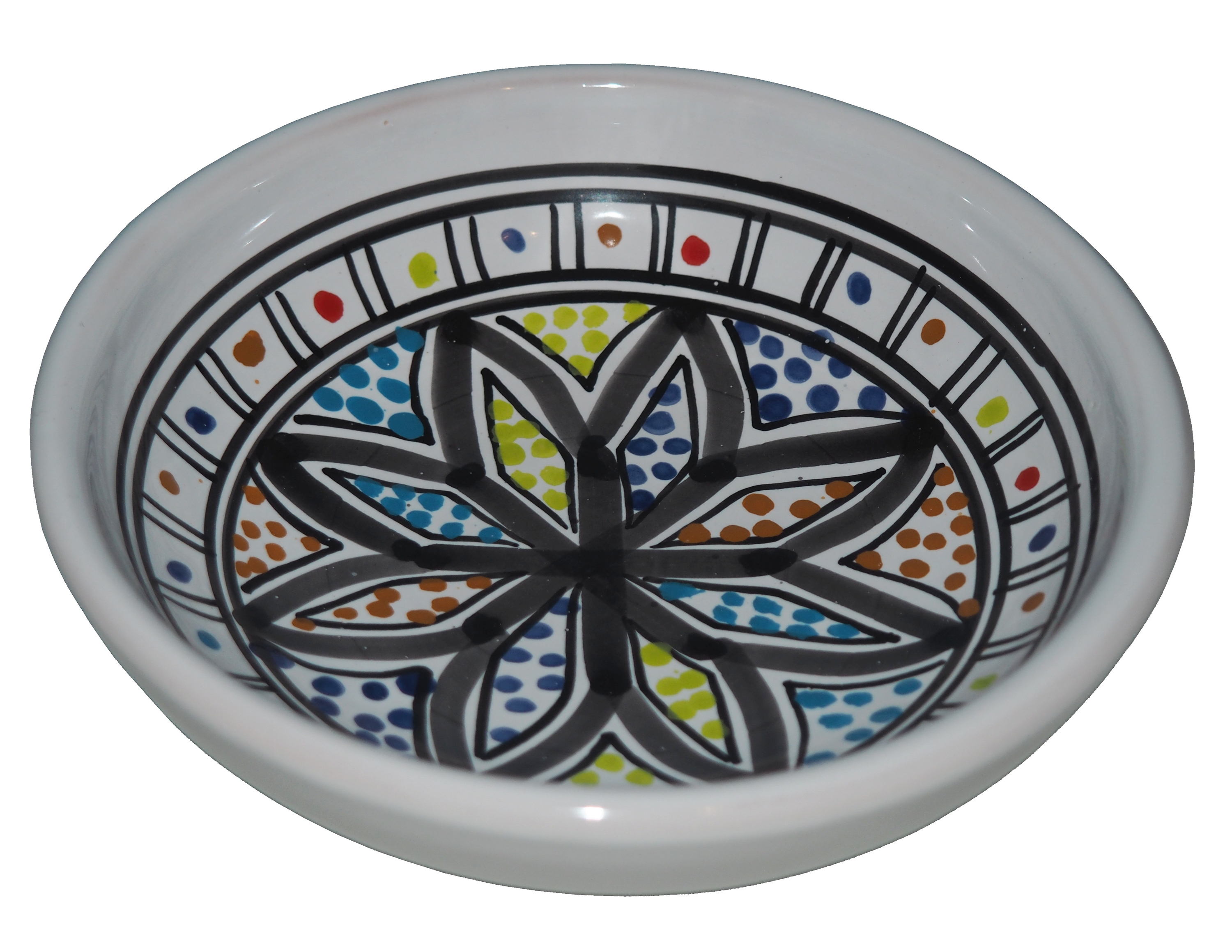 Zwraca uwagę piękne wzornictwo i bogata arabska kolorystyka. Miseczka malowana jest w berberyjskie wzory. Przepiękna, niebanalna ozdoba Twojego stołu - ozdobna miseczka prosto z Tunezji.