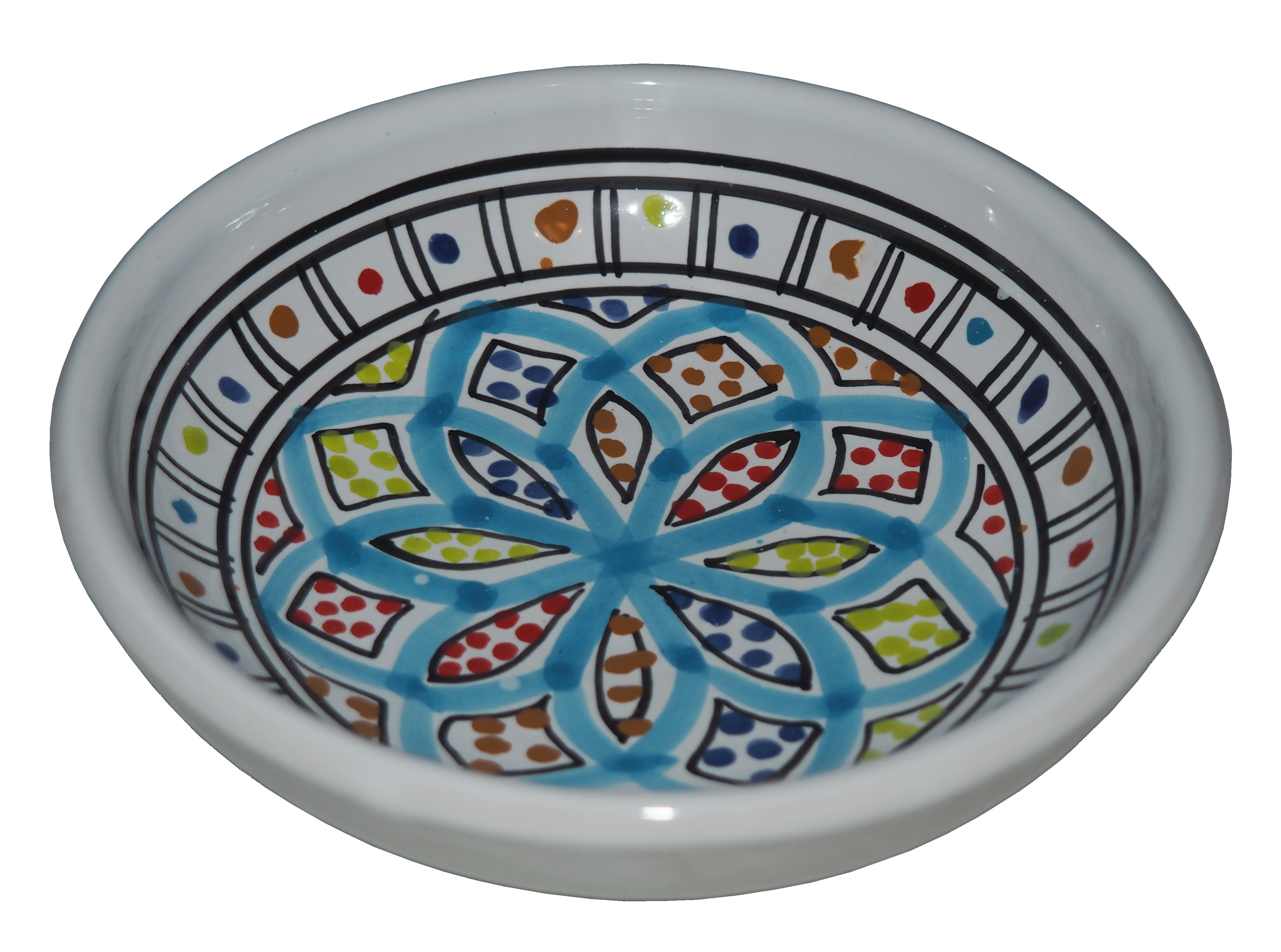 Zwraca uwagę piękne wzornictwo i bogata arabska kolorystyka. Miseczka malowana jest w berberyjskie wzory. Przepiękna, niebanalna ozdoba Twojego stołu - ozdobna miseczka prosto z Tunezji.