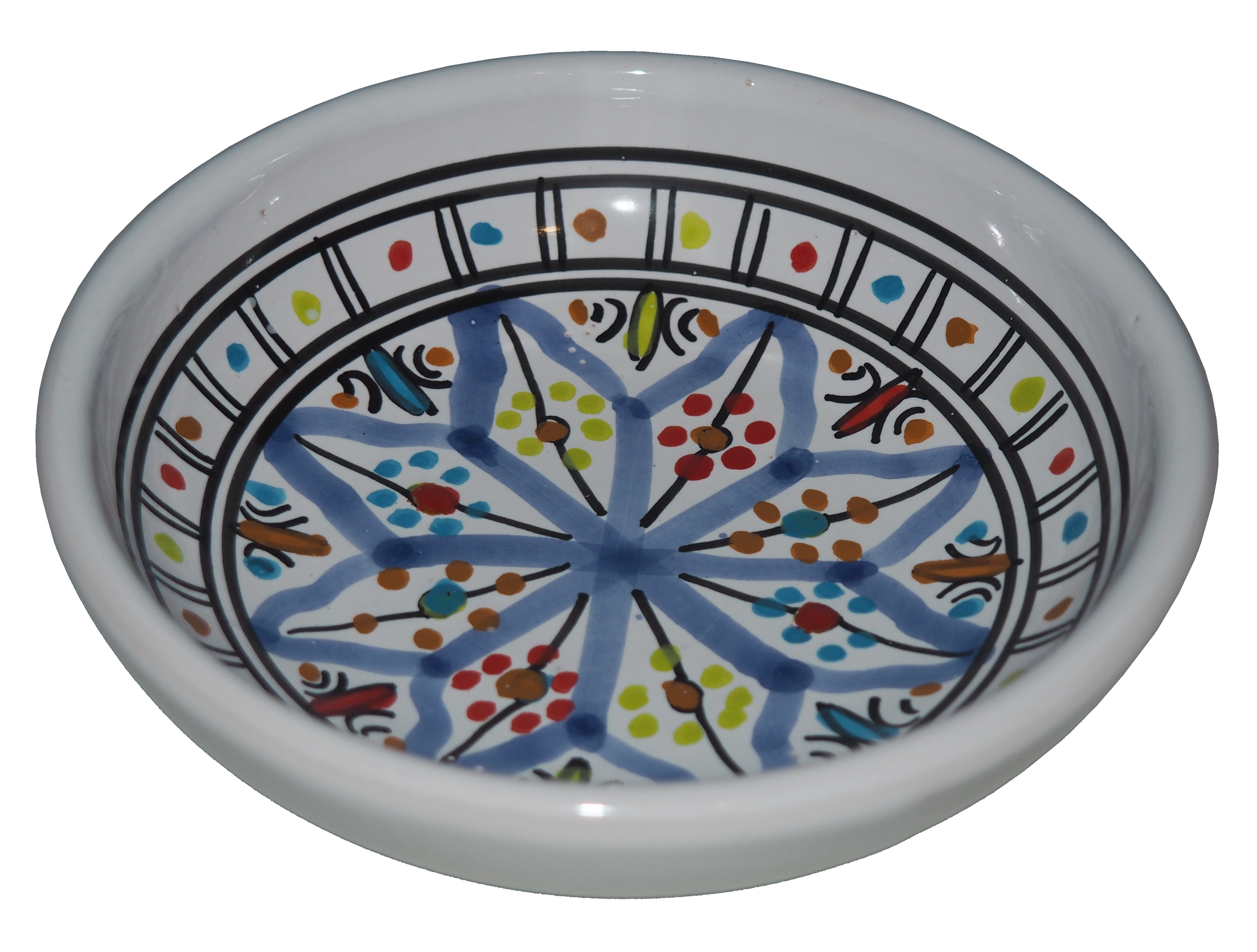 Wszystkie sprzedawane przez nas produkty ceramiczne pochodzą z małych rodzinnych "fabryczek" berberyjskich - produkty te są wykonane i malowane ręcznie. Wszystkie umieszczone na nich wzory to tradycyjne motywy arabskie i berberyjskie.