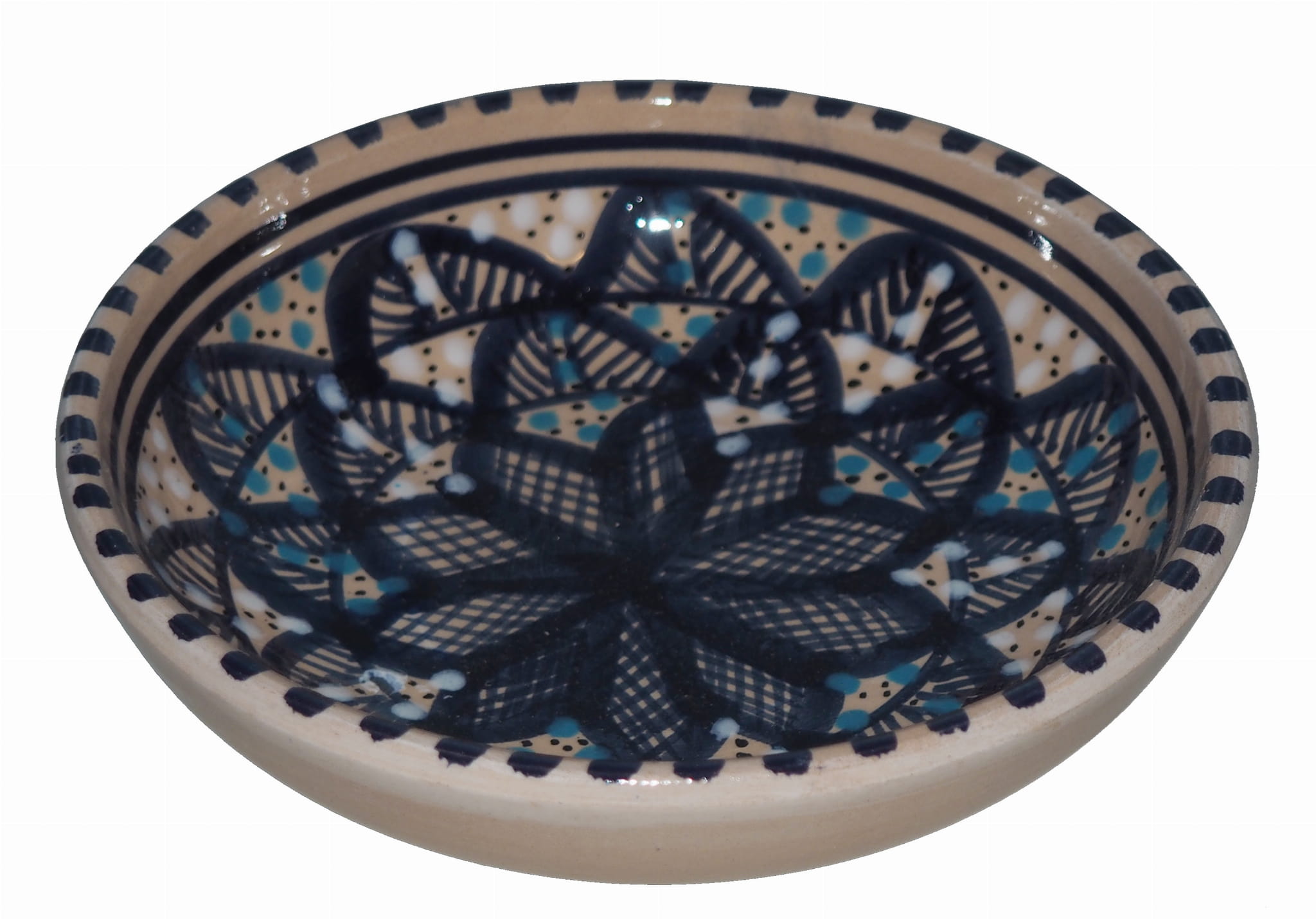 Zwraca uwagę piękne wzornictwo i bogata arabska kolorystyka. Miseczka malowana jest w berberyjskie wzory. Przepiękna, niebanalna ozdoba Twojego stołu - ozdobna miseczka prosto z Tunezji.