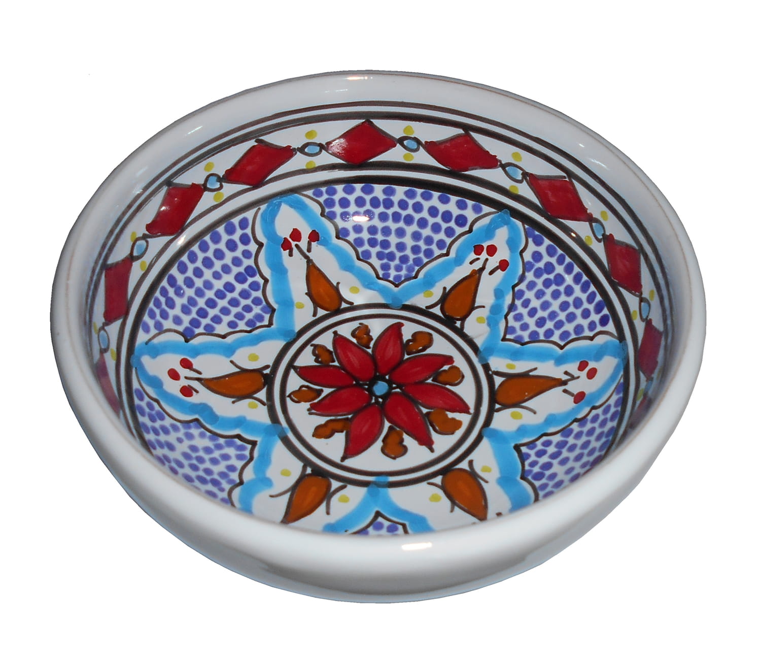 Zwraca uwagę piękne wzornictwo i bogata arabska kolorystyka. Miseczka malowana jest w berberyjskie wzory. Przepiękna, niebanalna ozdoba Twojego stołu prosto z Tunezji.