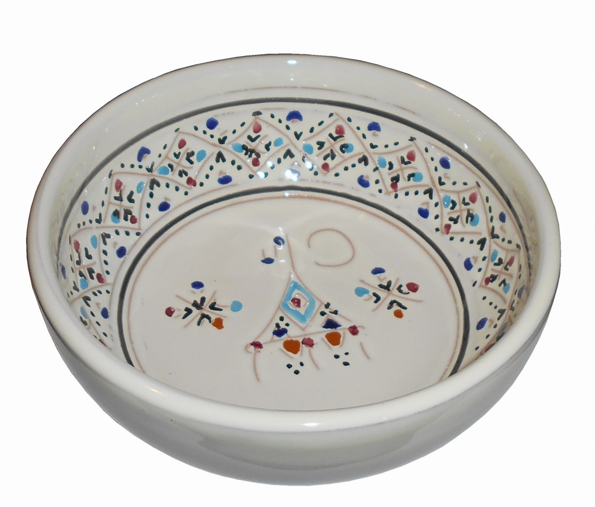 Zwraca uwagę piękne wzornictwo i bogata arabska kolorystyka. Miseczka malowana jest w berberyjskie wzory. Przepiękna, niebanalna ozdoba Twojego stołu prosto z Tunezji.
