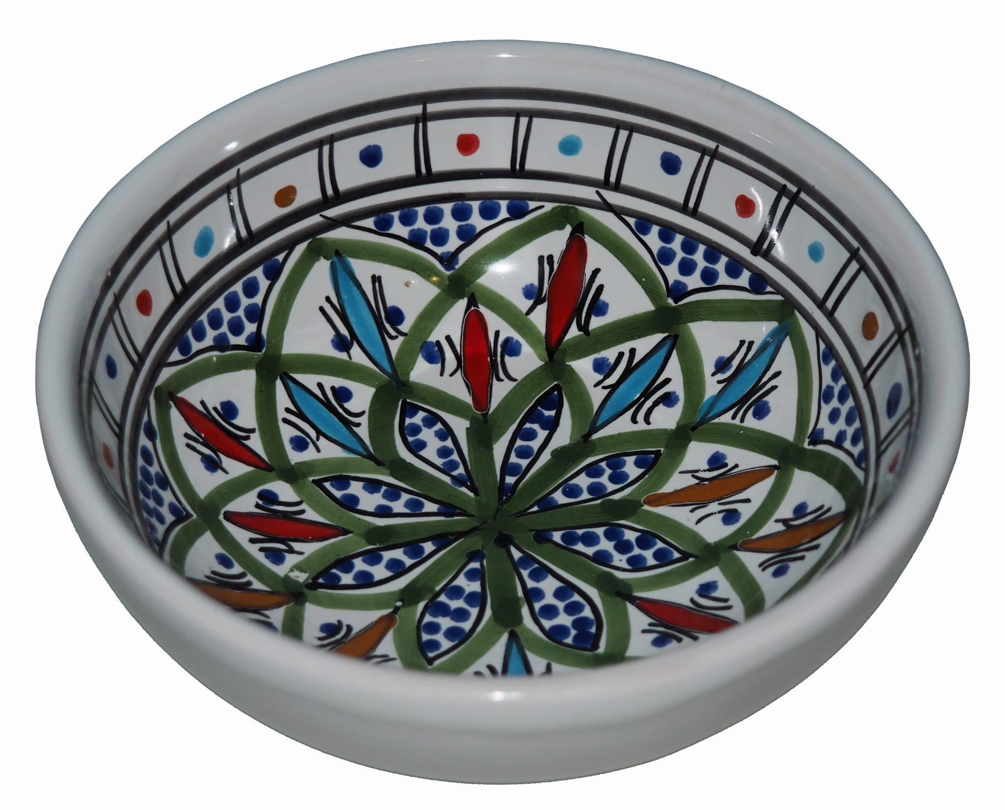 Zwraca uwagę piękne wzornictwo i bogata arabska kolorystyka. Miseczka malowana jest w berberyjskie wzory. Przepiękna, niebanalna ozdoba Twojego stołu prosto z Tunezji.