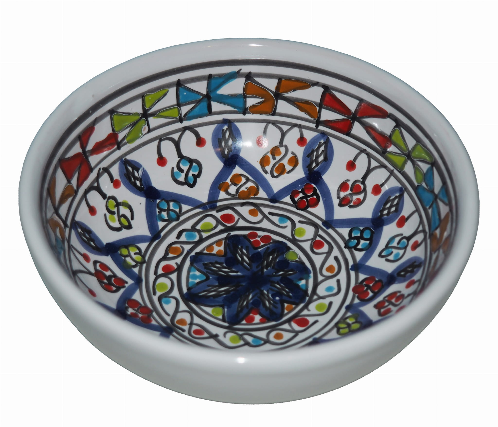Zwraca uwagę piękne wzornictwo i bogata arabska kolorystyka. Miseczka malowana jest w berberyjskie wzory. Przepiękna, niebanalna ozdoba Twojego stołu prosto z Tunezji.