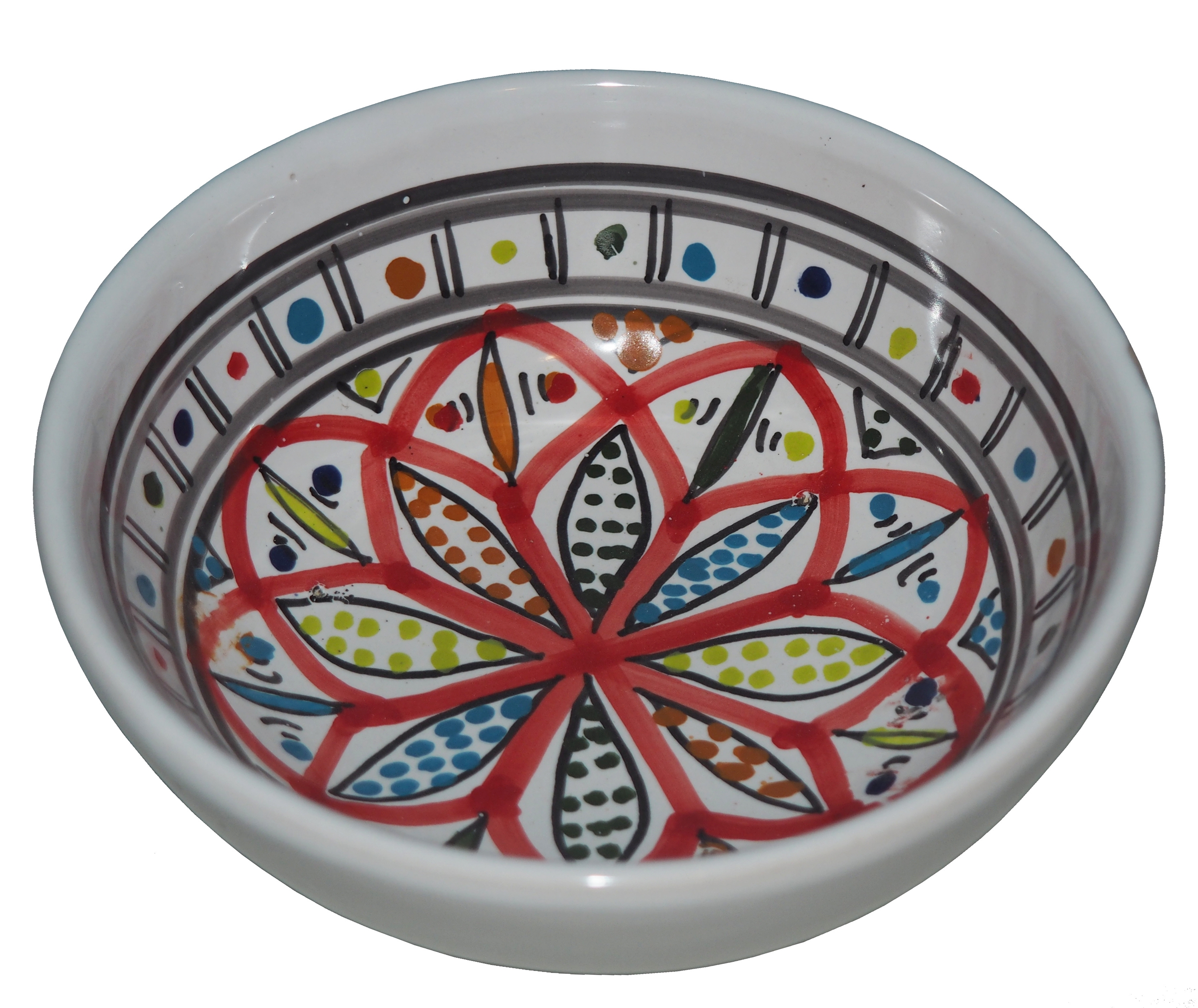 Zwraca uwagę piękne wzornictwo i bogata arabska kolorystyka. Miseczka malowana jest w berberyjskie wzory. Przepiękna, niebanalna ozdoba Twojego stołu prosto z Tunezji.