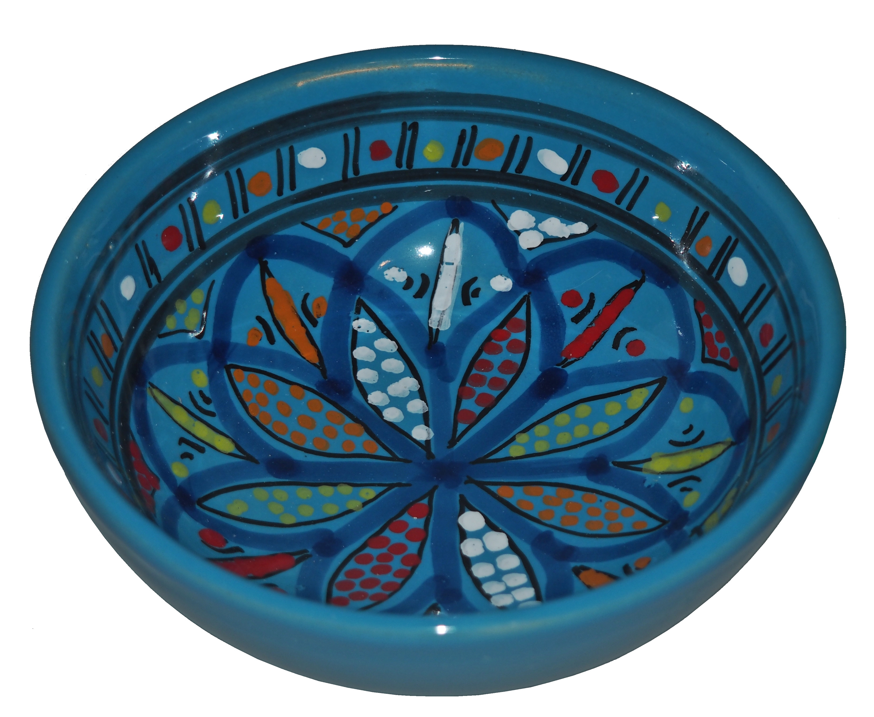 Zwraca uwagę piękne wzornictwo i bogata arabska kolorystyka. Miseczka malowana jest w berberyjskie wzory. Przepiękna, niebanalna ozdoba Twojego stołu prosto z Tunezji.