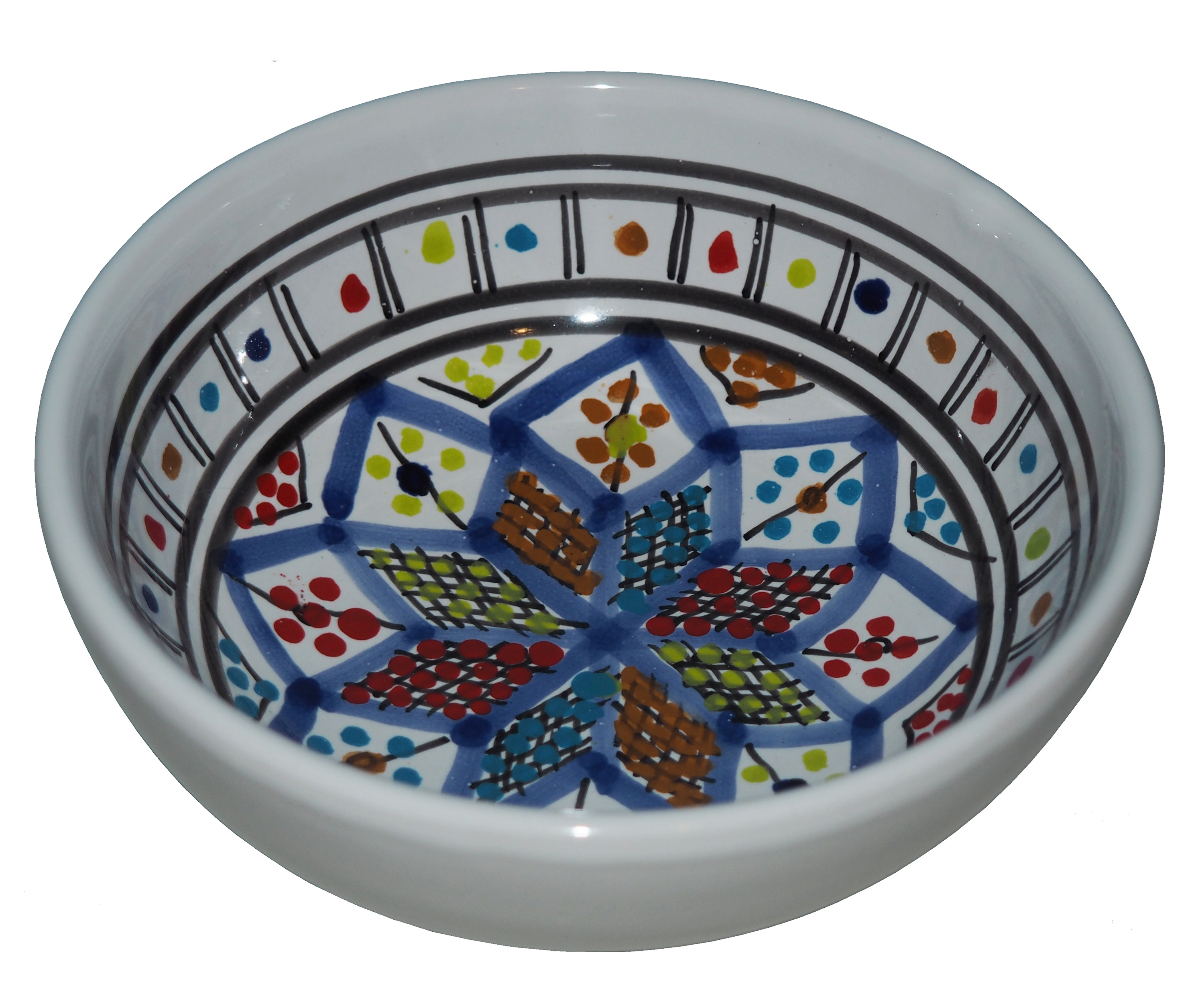 Zwraca uwagę piękne wzornictwo i bogata arabska kolorystyka. Miseczka malowana jest w berberyjskie wzory. Przepiękna, niebanalna ozdoba Twojego stołu prosto z Tunezji.