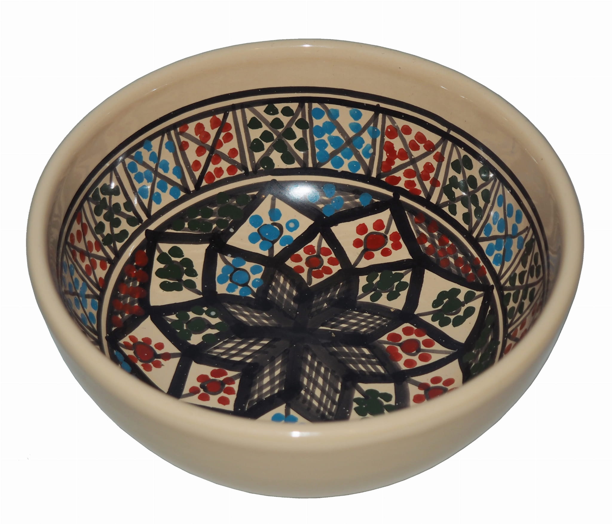 Zwraca uwagę piękne wzornictwo i bogata arabska kolorystyka. Miseczka malowana jest w berberyjskie wzory. Przepiękna, niebanalna ozdoba Twojego stołu prosto z Tunezji.