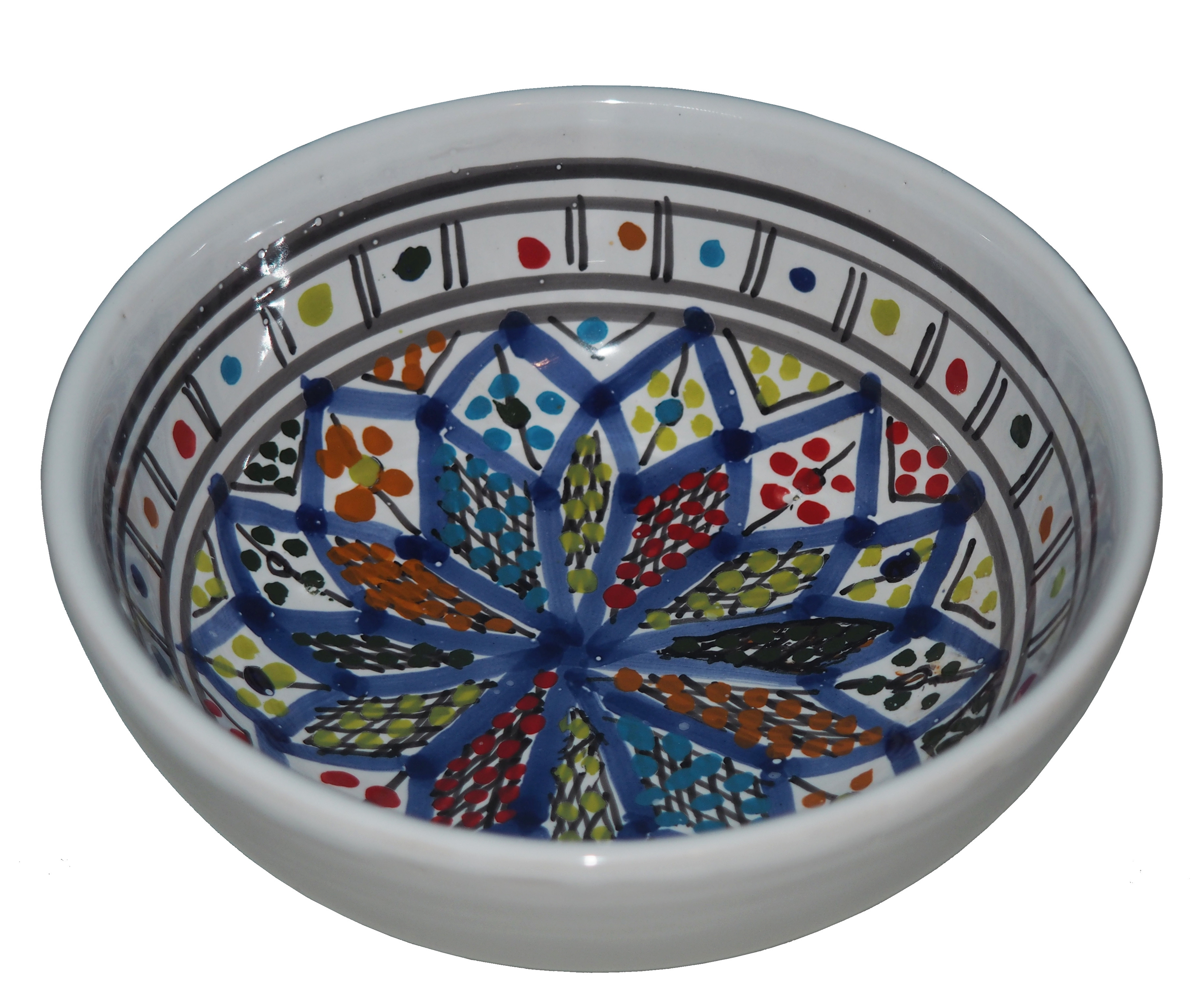Zwraca uwagę piękne wzornictwo i bogata arabska kolorystyka. Miseczka malowana jest w berberyjskie wzory. Przepiękna, niebanalna ozdoba Twojego stołu prosto z Tunezji.