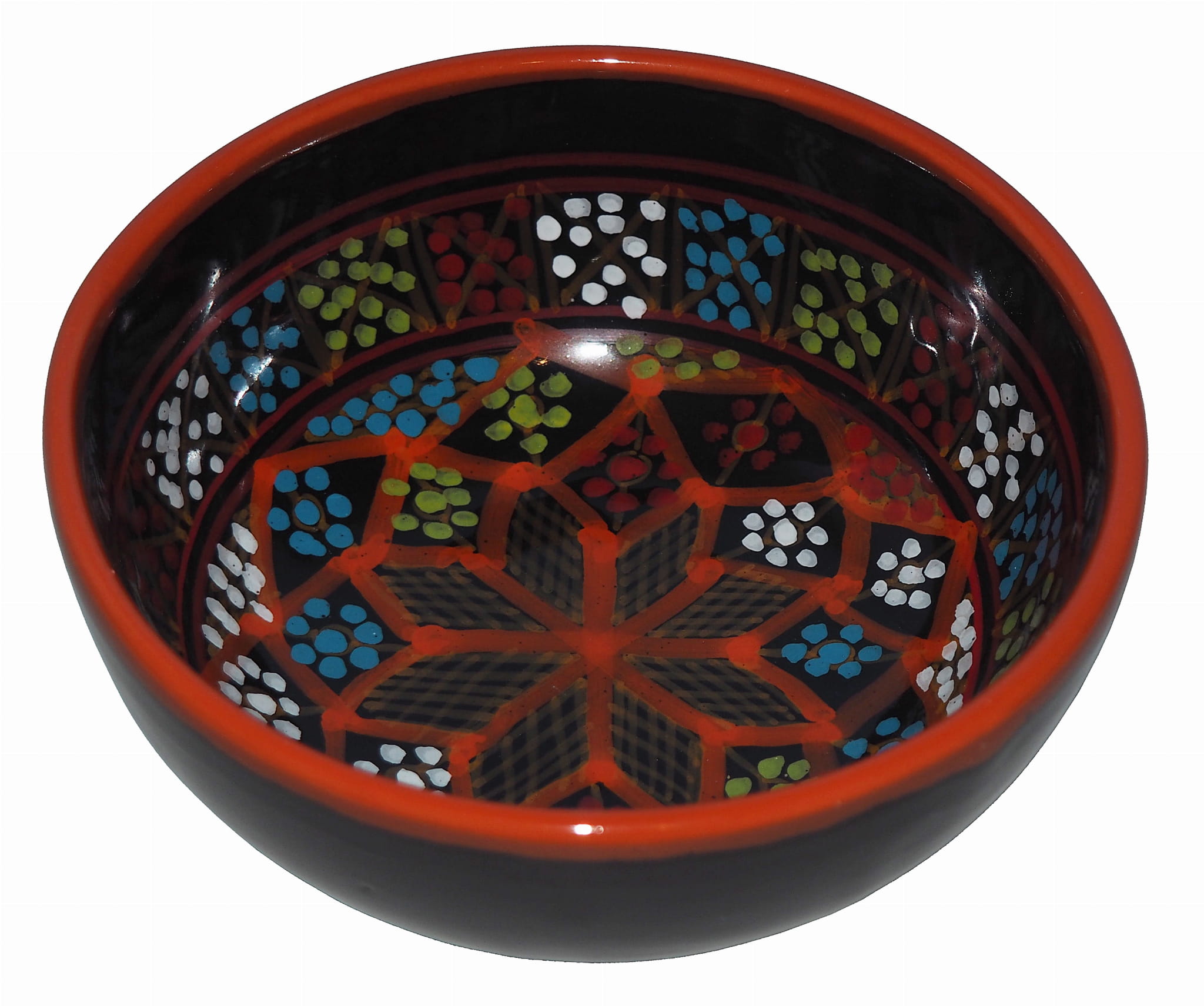 Zwraca uwagę piękne wzornictwo i bogata arabska kolorystyka. Miseczka malowana jest w berberyjskie wzory. Przepiękna, niebanalna ozdoba Twojego stołu prosto z Tunezji.