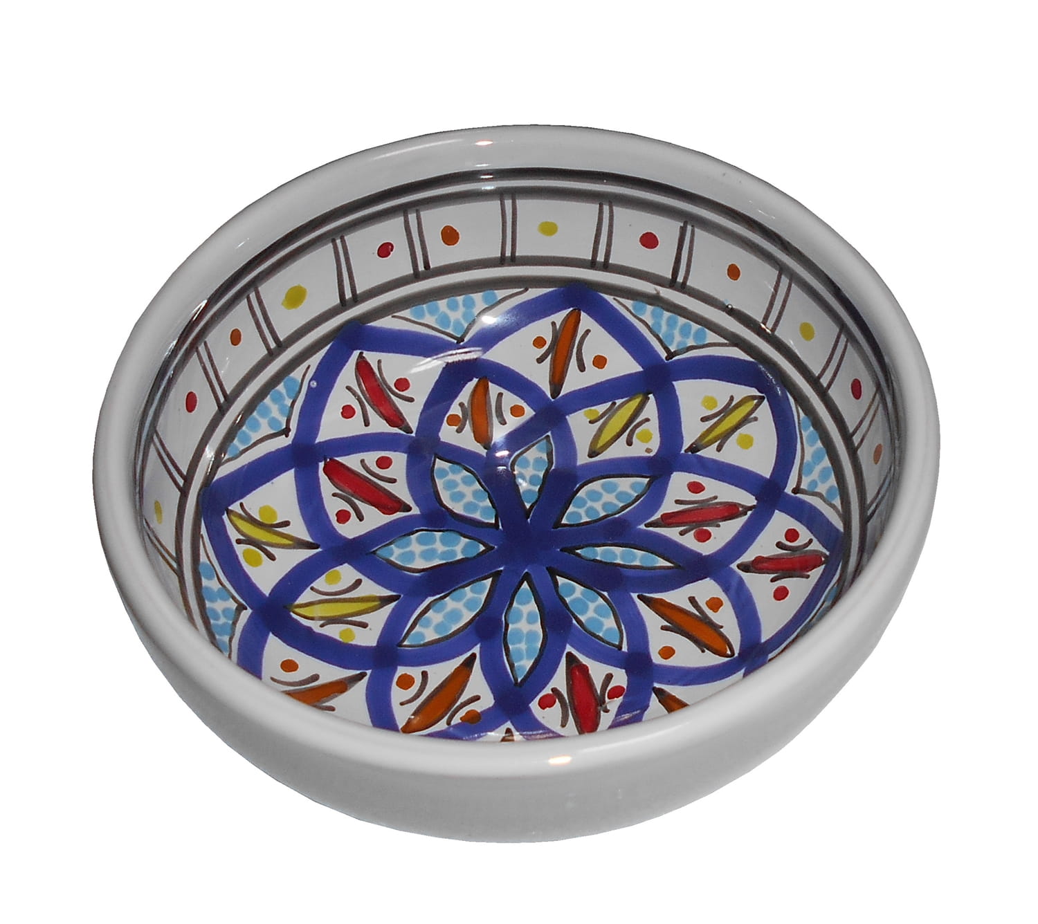 Zwraca uwagę piękne wzornictwo i bogata arabska kolorystyka. Miseczka malowana jest w berberyjskie wzory. Przepiękna, niebanalna ozdoba Twojego stołu prosto z Tunezji.