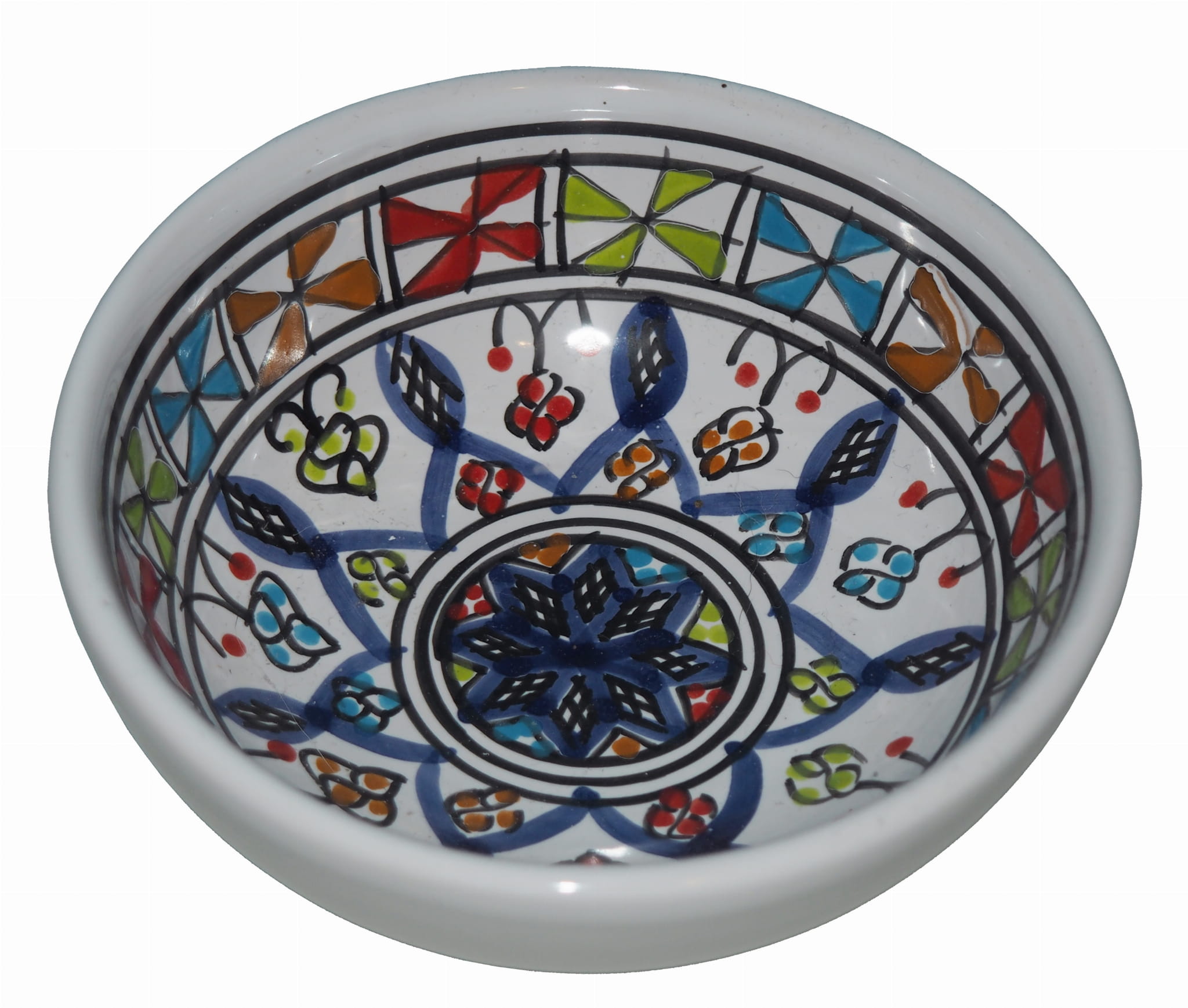 Zwraca uwagę piękne wzornictwo i bogata arabska kolorystyka. Miseczka malowana jest w berberyjskie wzory. Przepiękna, niebanalna ozdoba Twojego stołu prosto z Tunezji.