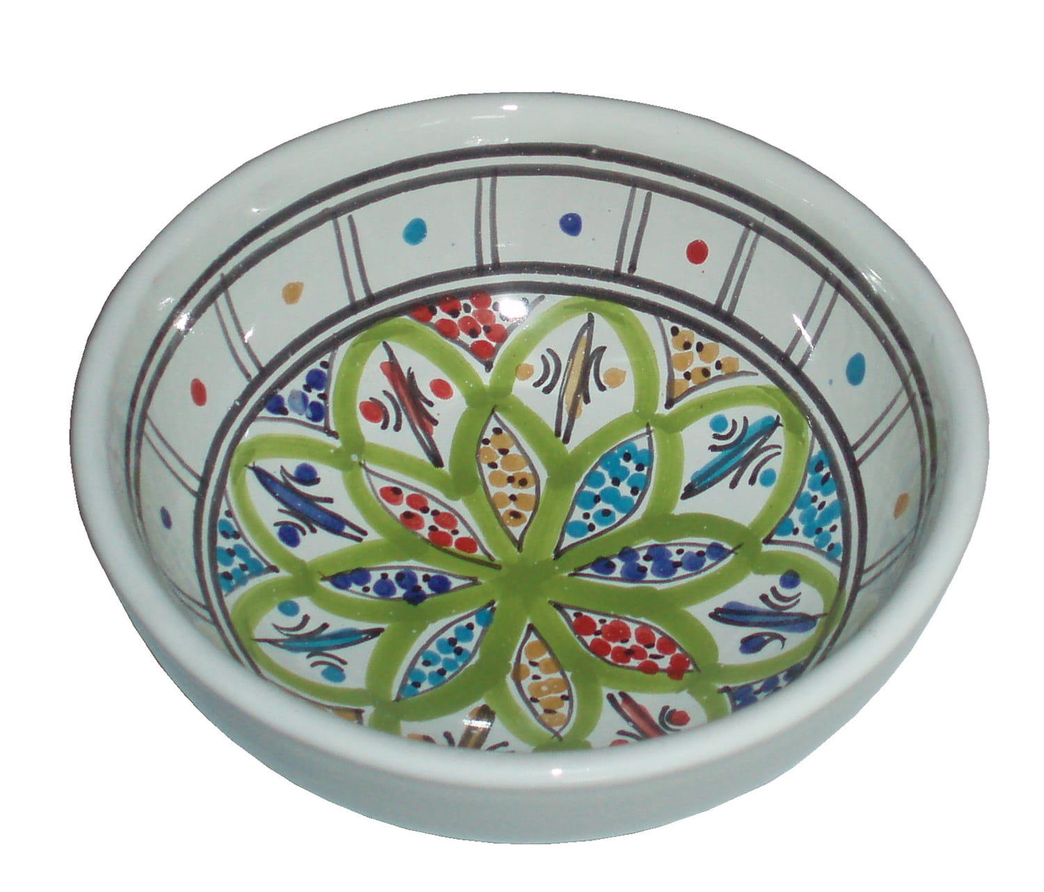 Zwraca uwagę piękne wzornictwo i bogata arabska kolorystyka. Miseczka malowana jest w berberyjskie wzory. Przepiękna, niebanalna ozdoba Twojego stołu prosto z Tunezji.