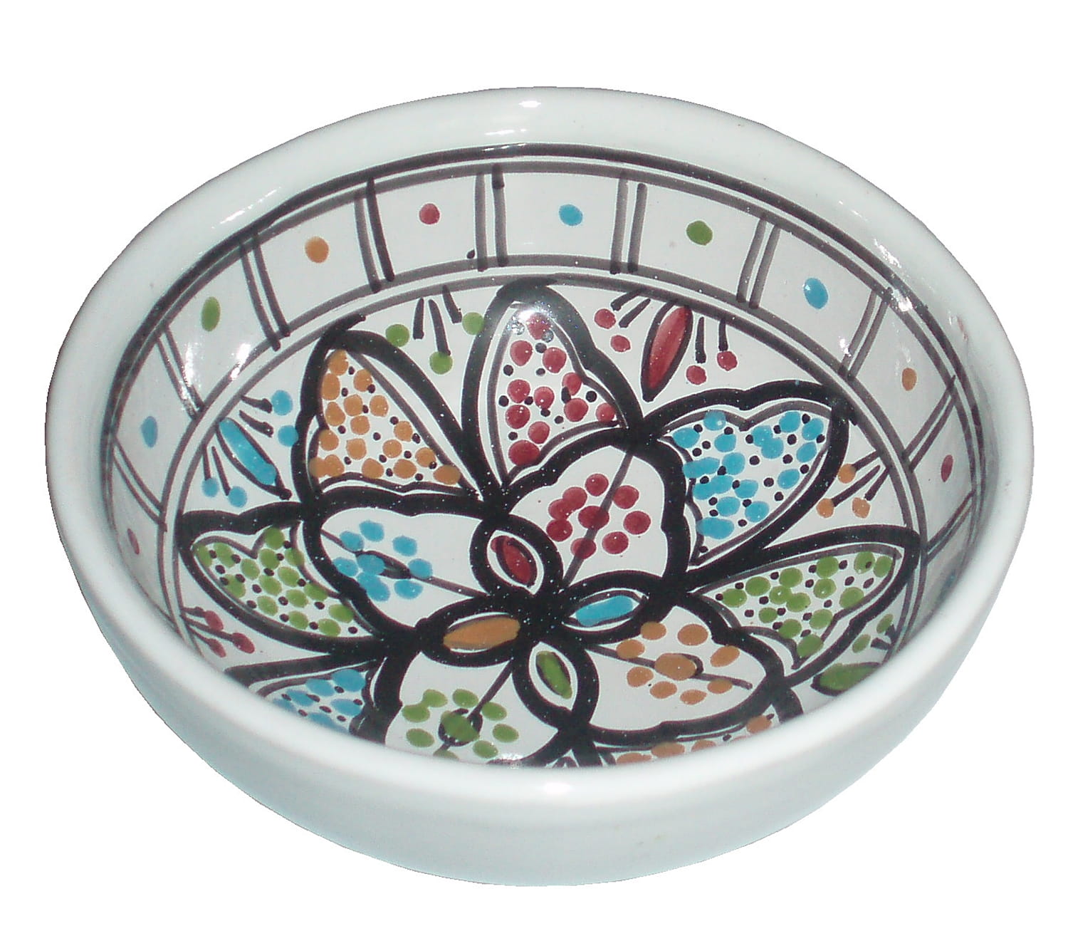 Zwraca uwagę piękne wzornictwo i bogata arabska kolorystyka. Miseczka malowana jest w berberyjskie wzory. Przepiękna, niebanalna ozdoba Twojego stołu prosto z Tunezji.