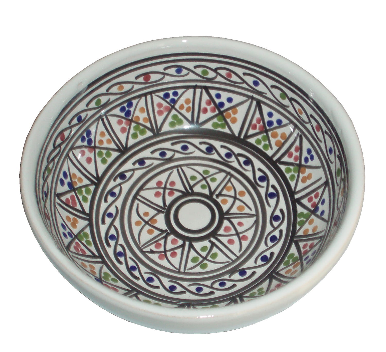 Wszystkie sprzedawane przez nas produkty ceramiczne pochodzą z małych rodzinnych "fabryczek" berberyjskich - produkty te są wykonane i malowane ręcznie. Wszystkie umieszczone na nich wzory to tradycyjne motywy arabskie i berberyjskie.