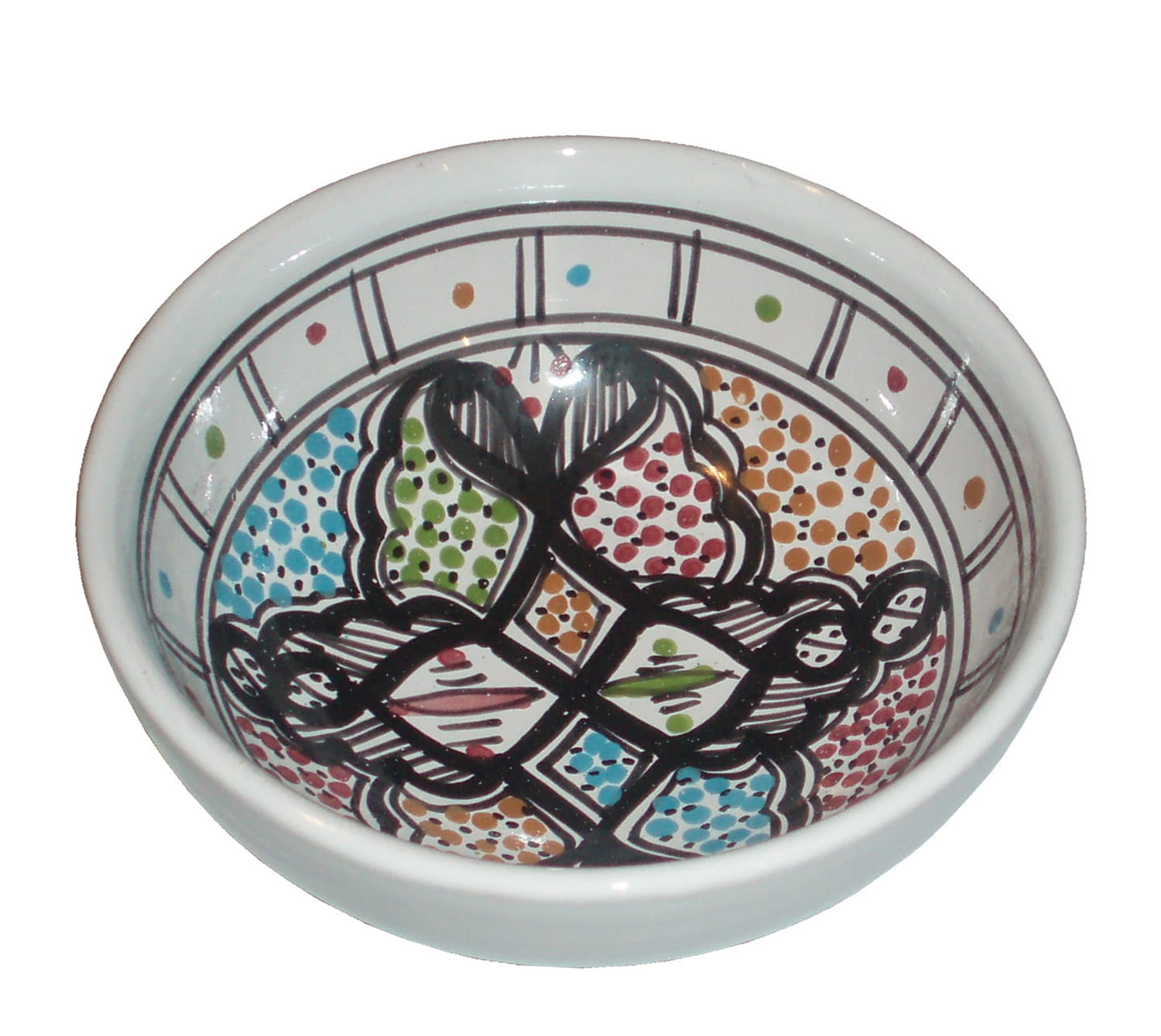 Zwraca uwagę piękne wzornictwo i bogata arabska kolorystyka. Miseczka malowana jest w berberyjskie wzory. Przepiękna, niebanalna ozdoba Twojego stołu prosto z Tunezji.