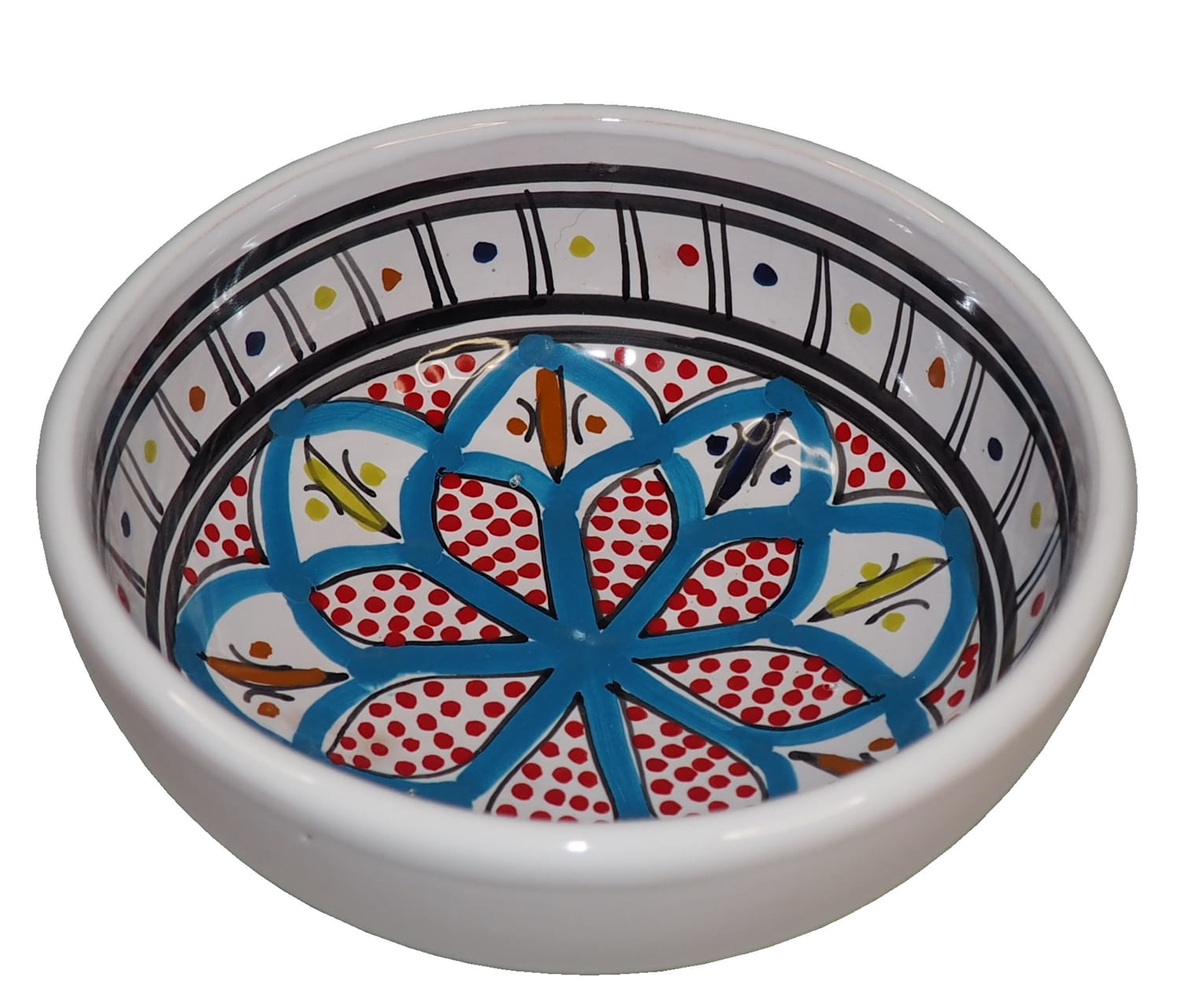 Zwraca uwagę piękne wzornictwo i bogata arabska kolorystyka. Miseczka malowana jest w berberyjskie wzory. Przepiękna, niebanalna ozdoba Twojego stołu prosto z Tunezji.