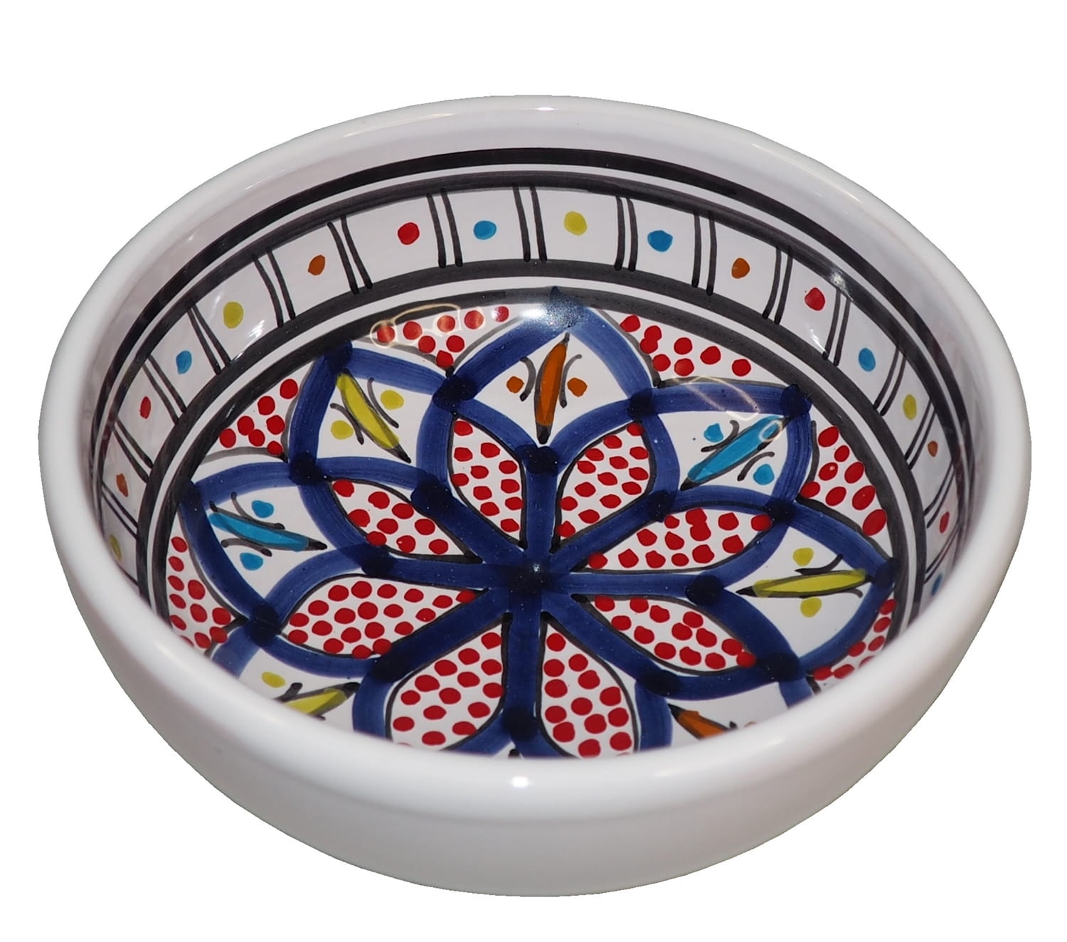 Zwraca uwagę piękne wzornictwo i bogata arabska kolorystyka. Miseczka malowana jest w berberyjskie wzory. Przepiękna, niebanalna ozdoba Twojego stołu prosto z Tunezji.