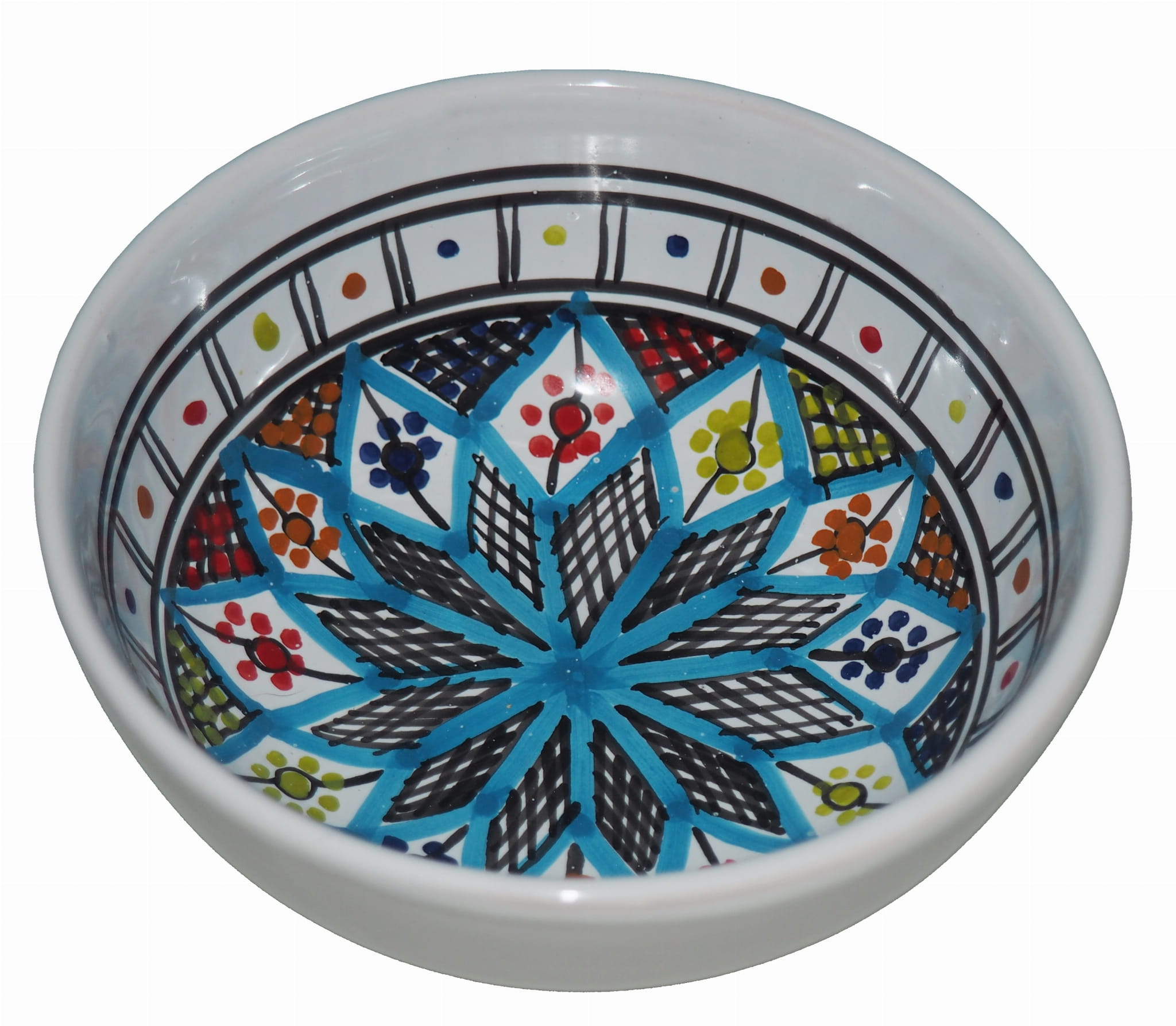 Zwraca uwagę piękne wzornictwo i bogata arabska kolorystyka. Miseczka malowana jest w berberyjskie wzory. Przepiękna, niebanalna ozdoba Twojego stołu prosto z Tunezji.