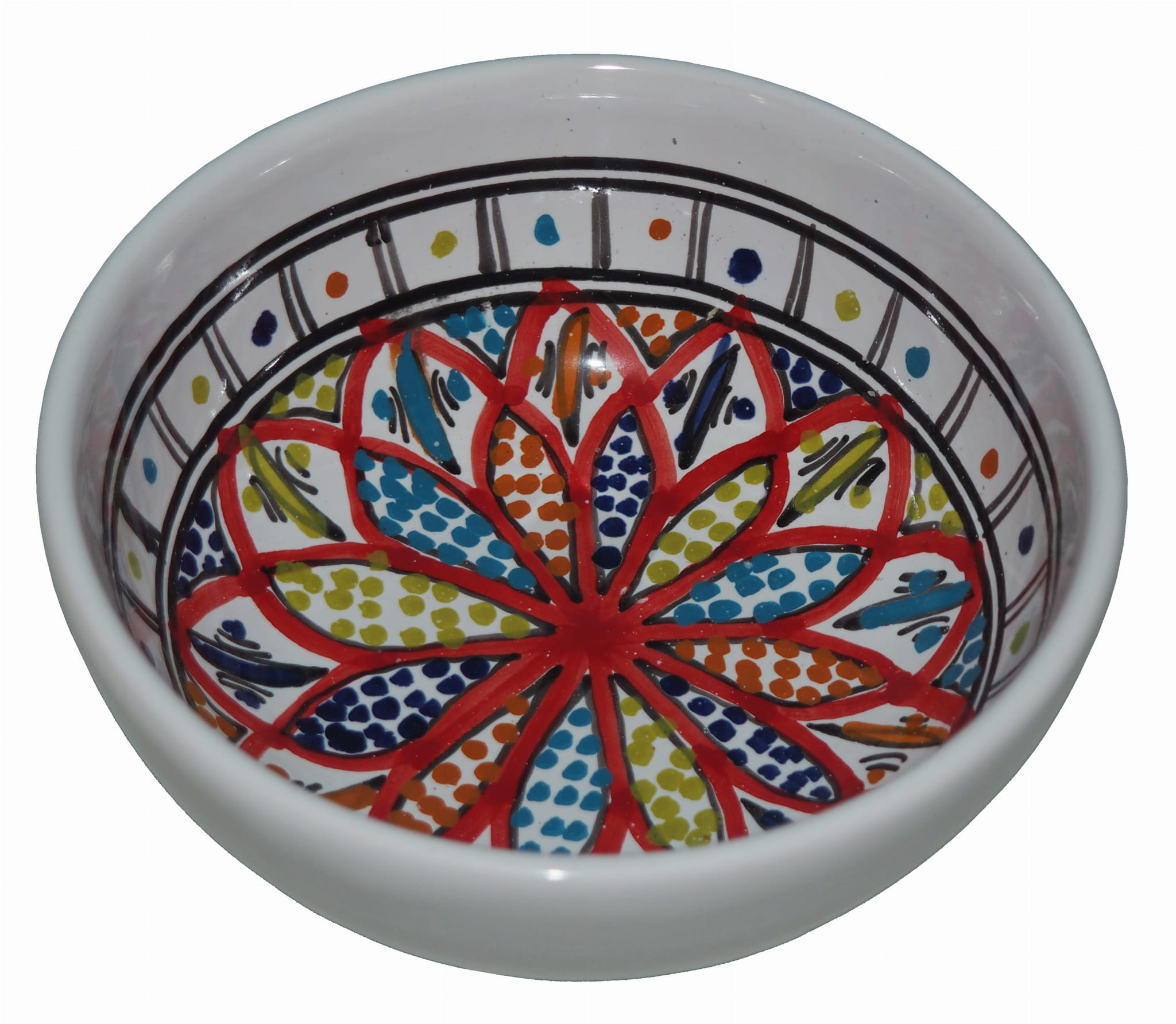 Zwraca uwagę piękne wzornictwo i bogata arabska kolorystyka. Miseczka malowana jest w berberyjskie wzory. Przepiękna, niebanalna ozdoba Twojego stołu prosto z Tunezji.