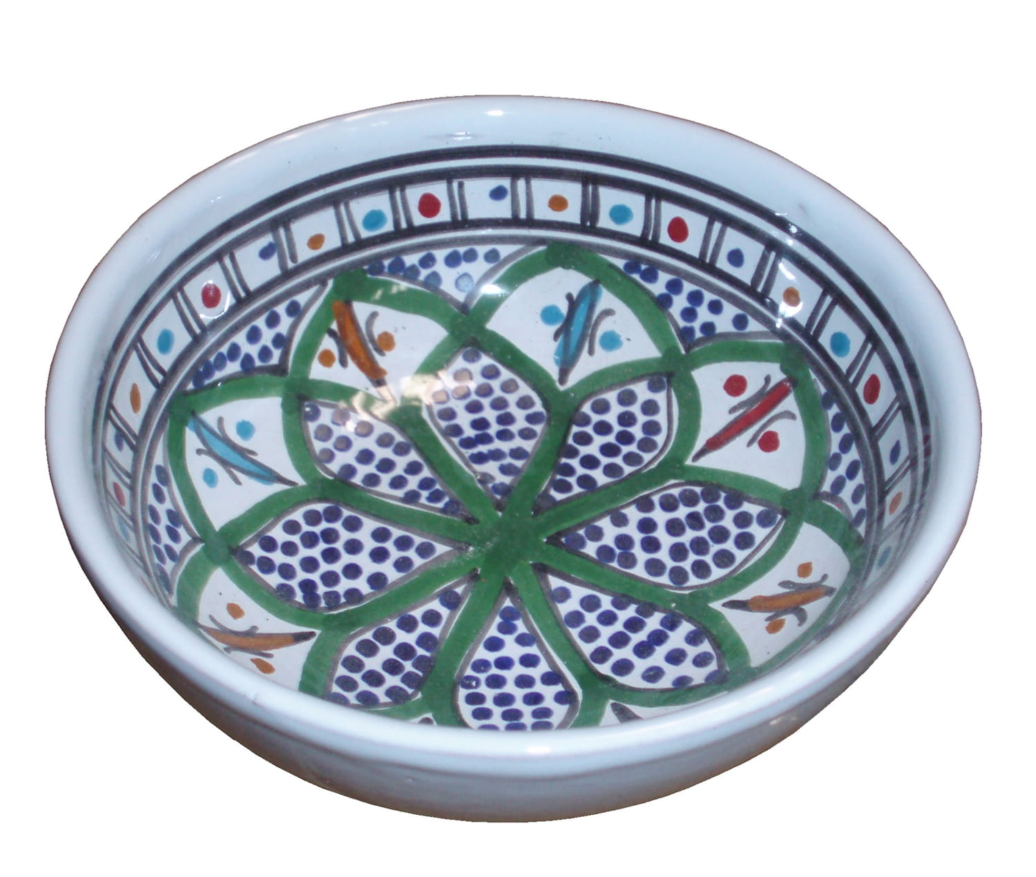 Zwraca uwagę piękne wzornictwo i bogata arabska kolorystyka. Miseczka malowana jest w berberyjskie wzory. Przepiękna, niebanalna ozdoba Twojego stołu prosto z Tunezji.