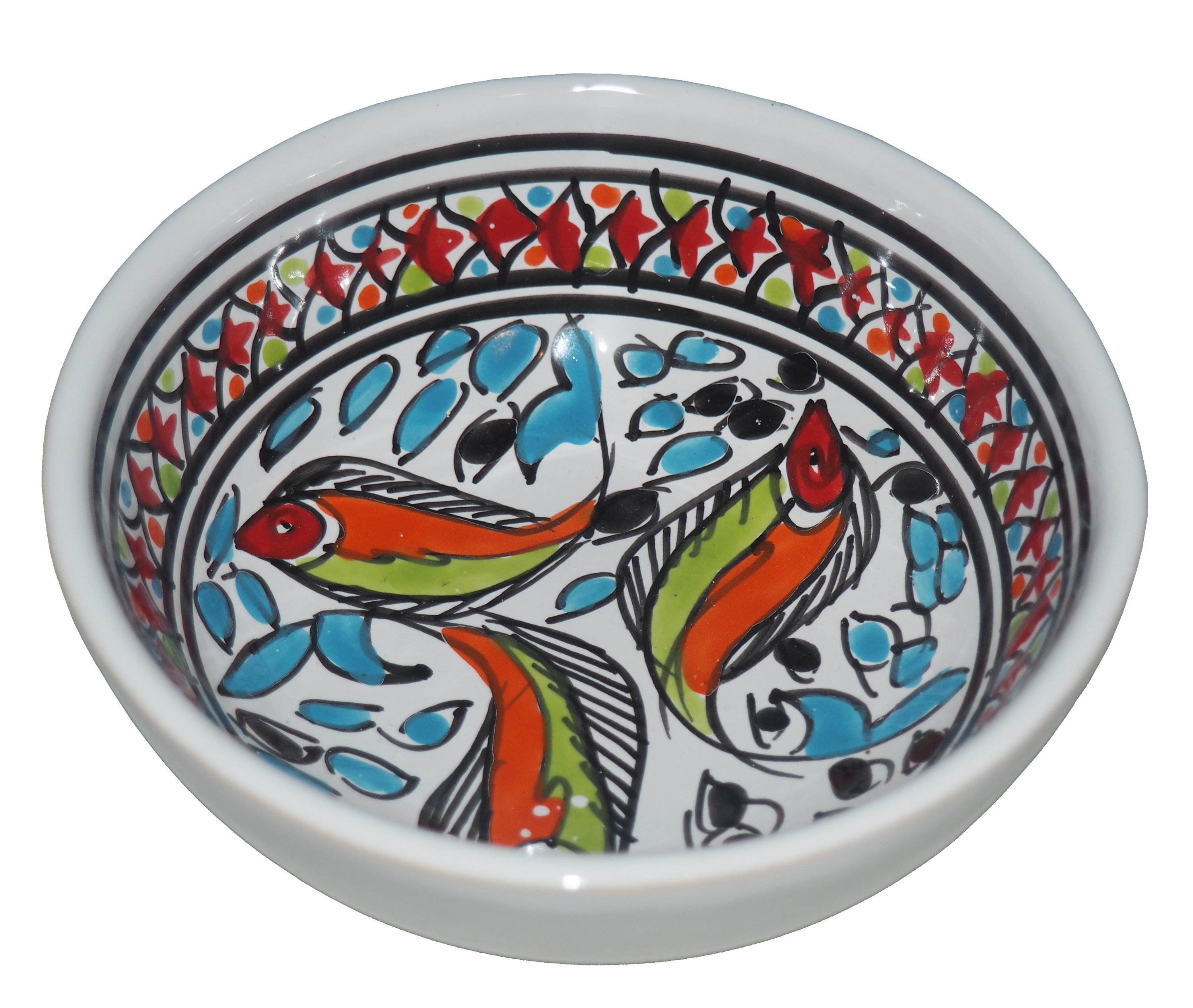 Zwraca uwagę piękne wzornictwo i bogata arabska kolorystyka. Miseczka malowana jest w berberyjskie wzory. Przepiękna, niebanalna ozdoba Twojego stołu prosto z Tunezji.
