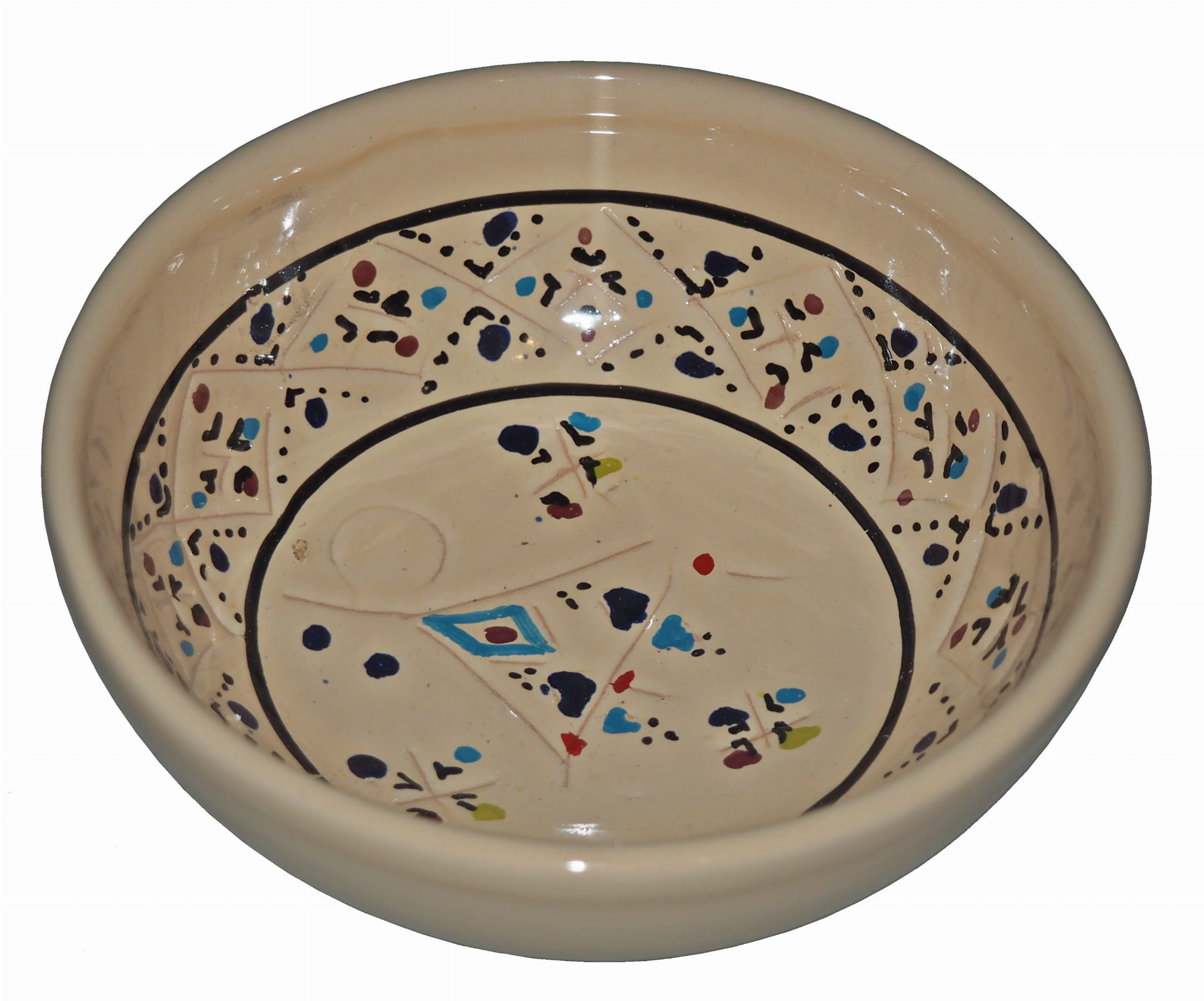 Zwraca uwagę piękne wzornictwo i bogata arabska kolorystyka. Miseczka malowana jest w berberyjskie wzory. Przepiękna, niebanalna ozdoba Twojego stołu prosto z Tunezji.