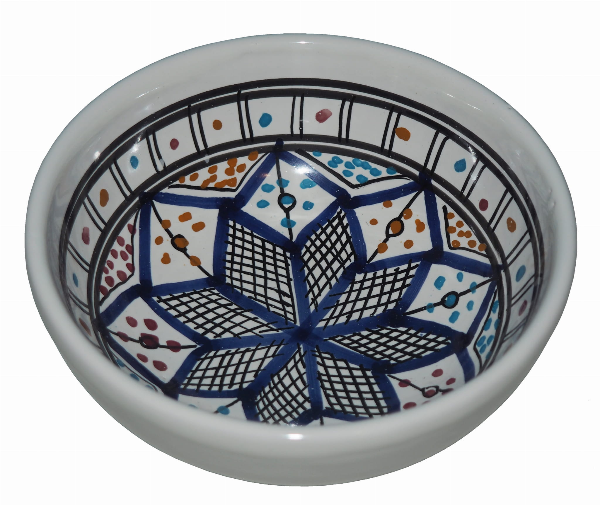 Zwraca uwagę piękne wzornictwo i bogata arabska kolorystyka. Miseczka malowana jest w berberyjskie wzory. Przepiękna, niebanalna ozdoba Twojego stołu prosto z Tunezji.