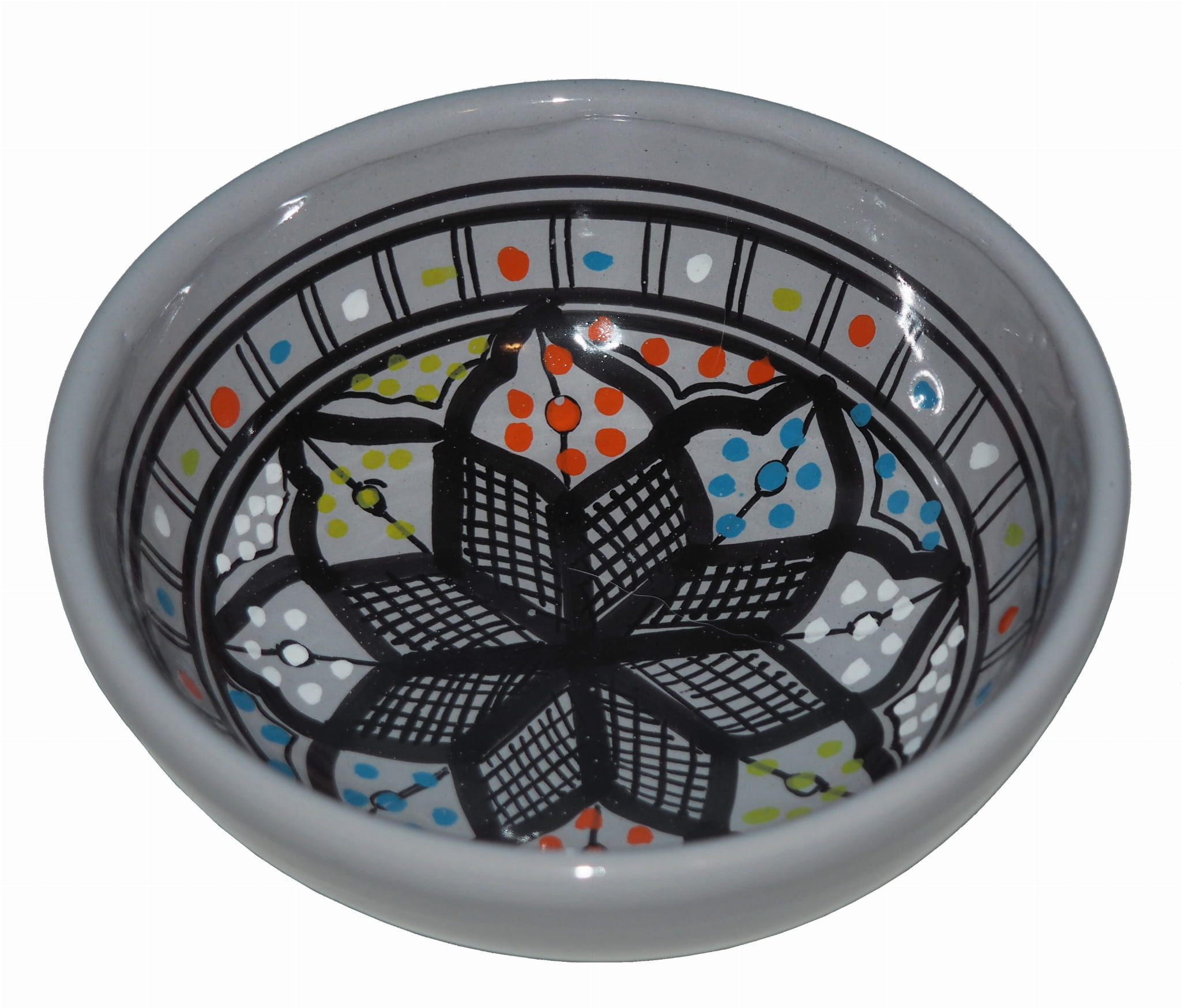 Zwraca uwagę piękne wzornictwo i bogata arabska kolorystyka. Miseczka malowana jest w berberyjskie wzory. Przepiękna, niebanalna ozdoba Twojego stołu prosto z Tunezji.