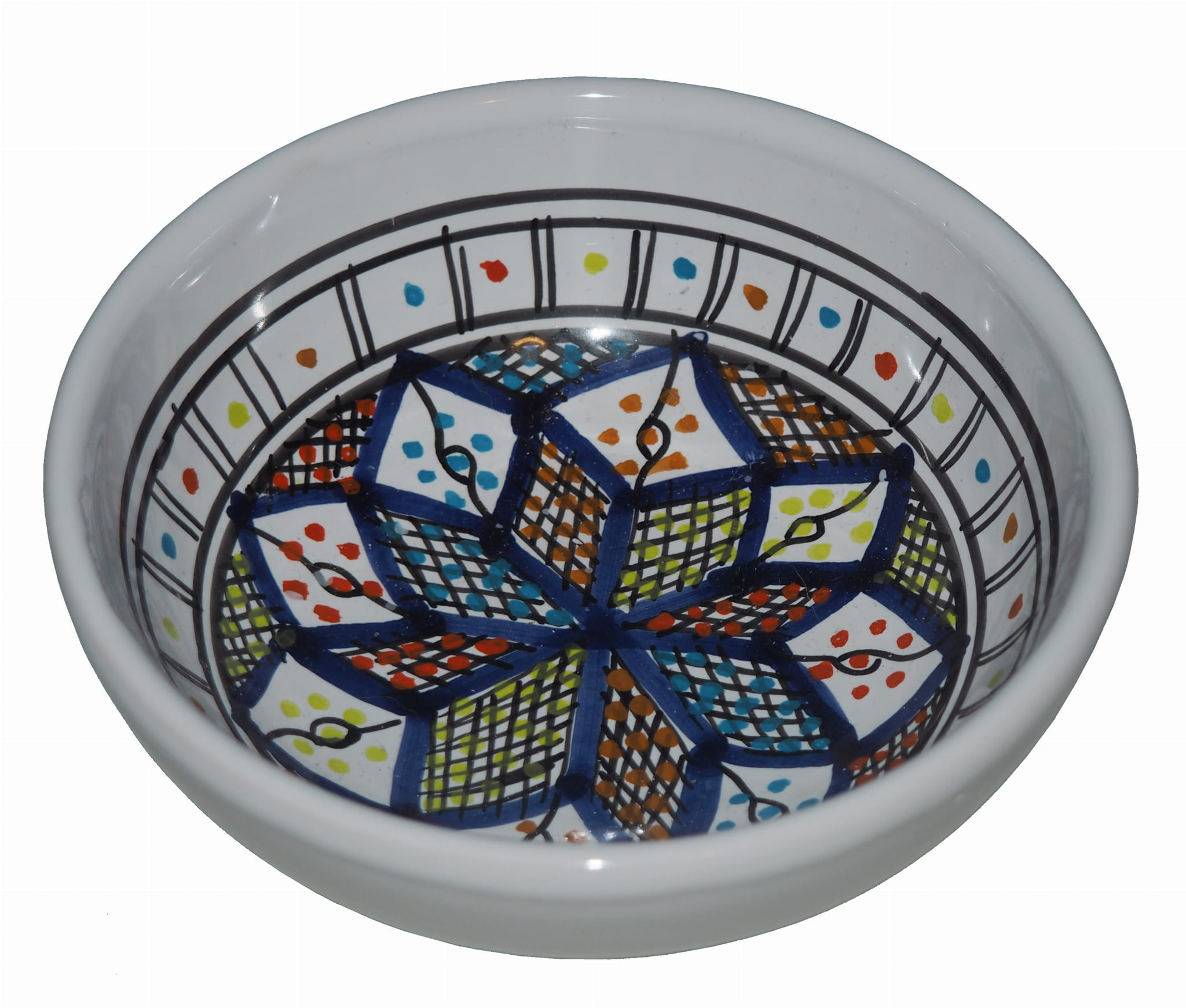 Zwraca uwagę piękne wzornictwo i bogata arabska kolorystyka. Miseczka malowana jest w berberyjskie wzory. Przepiękna, niebanalna ozdoba Twojego stołu prosto z Tunezji.