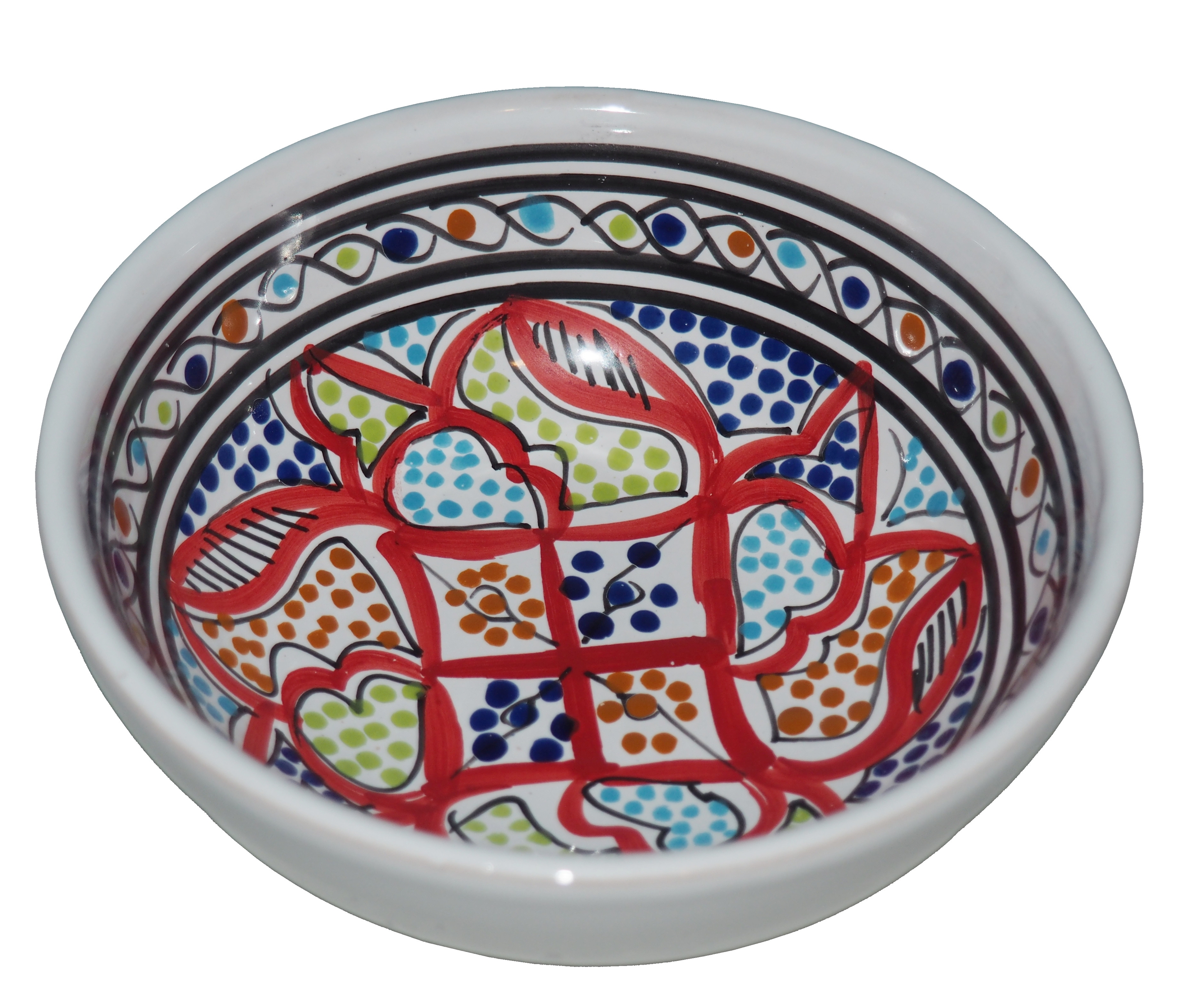 Zwraca uwagę piękne wzornictwo i bogata arabska kolorystyka. Miseczka malowana jest w berberyjskie wzory. Przepiękna, niebanalna ozdoba Twojego stołu prosto z Tunezji.