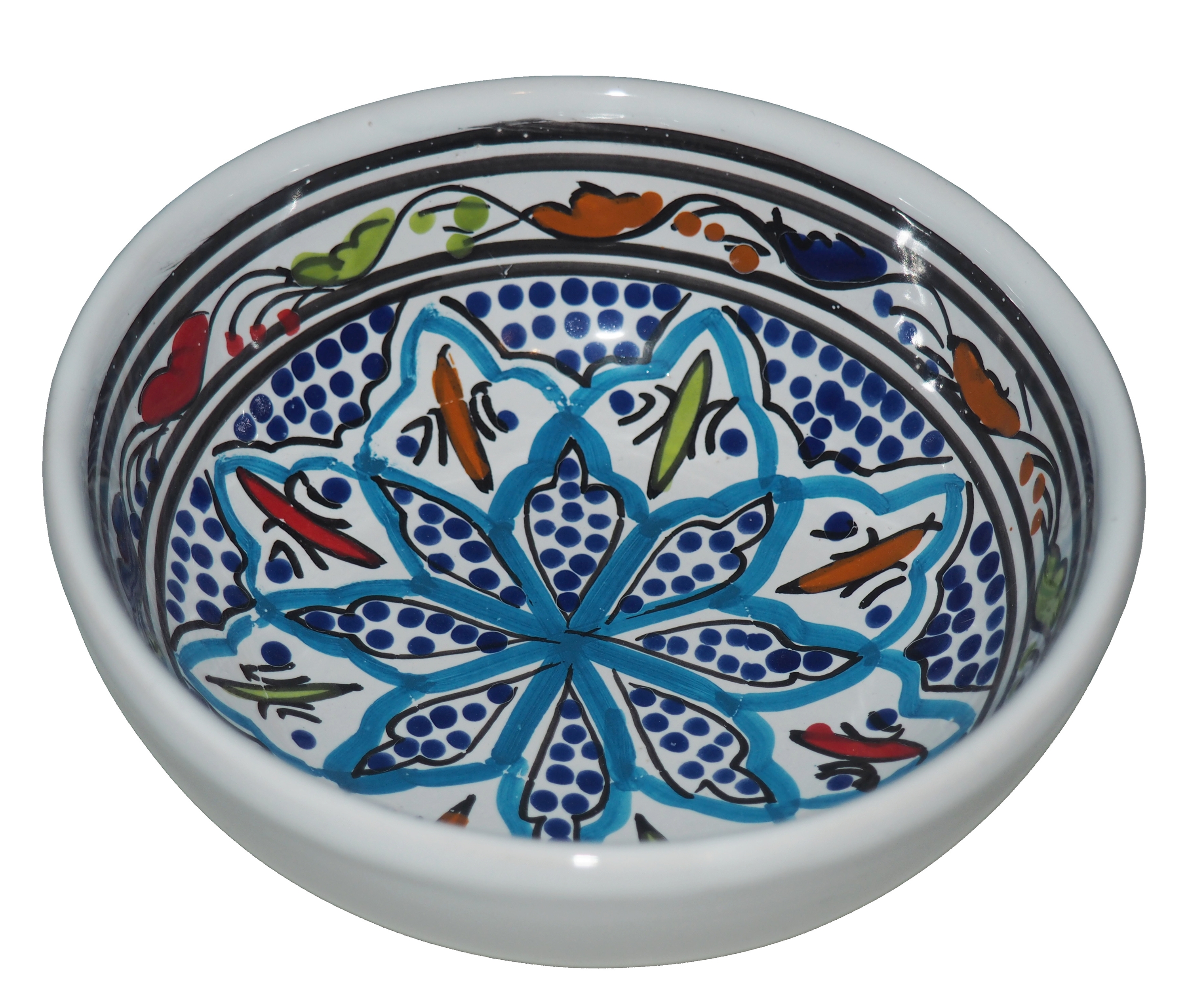 Zwraca uwagę piękne wzornictwo i bogata arabska kolorystyka. Miseczka malowana jest w berberyjskie wzory. Przepiękna, niebanalna ozdoba Twojego stołu prosto z Tunezji.