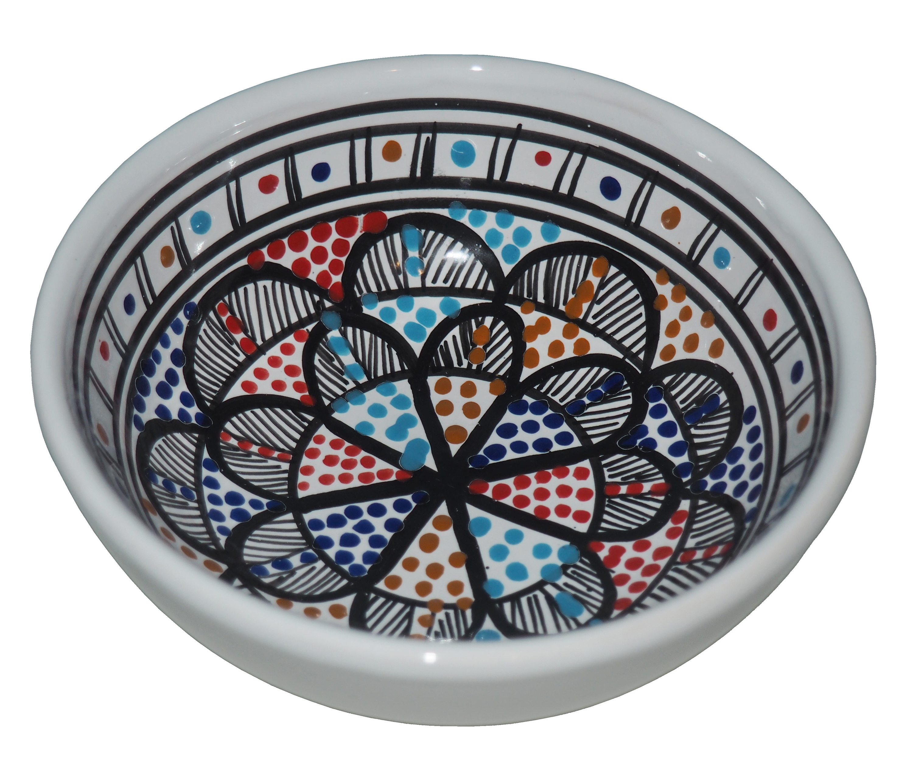 Zwraca uwagę piękne wzornictwo i bogata arabska kolorystyka. Miseczka malowana jest w berberyjskie wzory. Przepiękna, niebanalna ozdoba Twojego stołu prosto z Tunezji.
