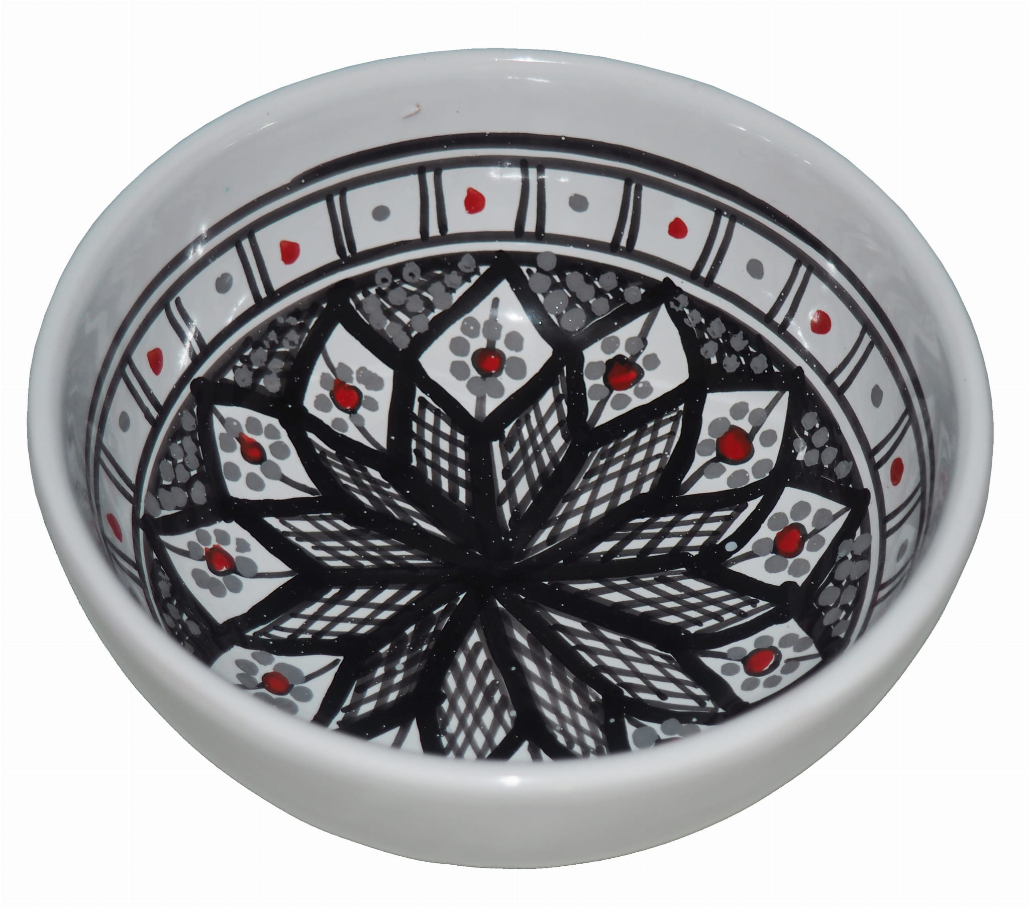 Zwraca uwagę piękne wzornictwo i bogata arabska kolorystyka. Miseczka malowana jest w berberyjskie wzory. Przepiękna, niebanalna ozdoba Twojego stołu - ozdobny,a jednocześnie funkcjonalny gadżet pochodzący z Tunezji.